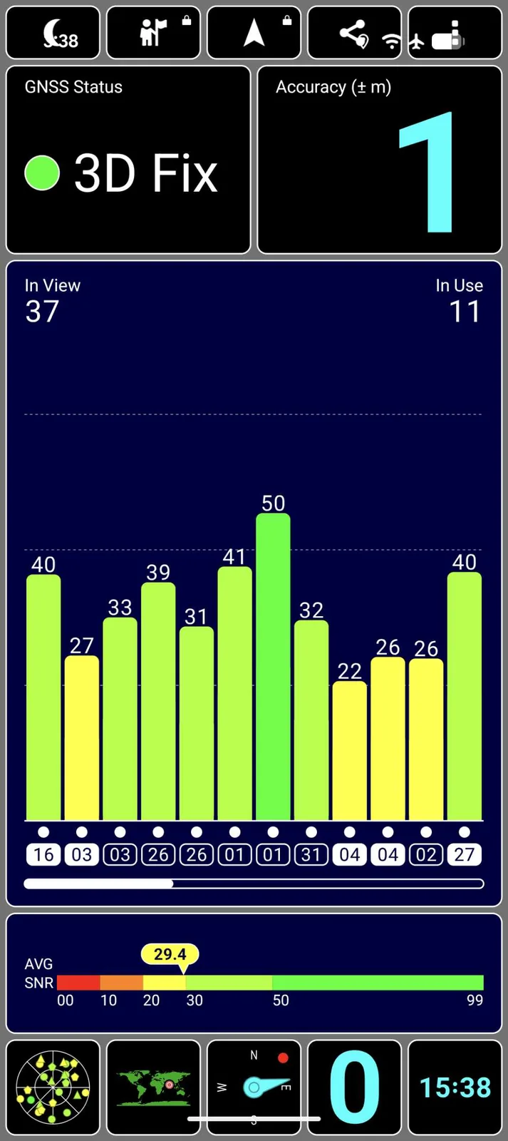 EGNOS ve GAGAN uydu tabanlı artırma sistemleri (SBAS) desteklenmiyor gibi görünmektedir.