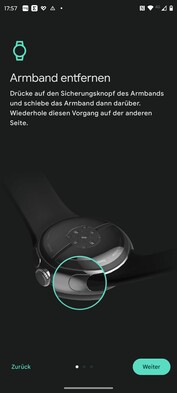 Kayış konektörünün yanında bulunan düğme sayesinde kayışları değiştirmek tek bir işlem değildir. Test sırasında bunun hızlı ve kolay bir iş olduğu kanıtlandı. Google'ın 20 milimetre genişliğinde kendi kayış konektörünü kullandığını belirtmek gerekir. Google, çevrimiçi mağazası aracılığıyla çok çeşitli uyumlu kayışlar sunuyor.