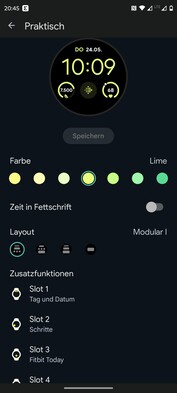 Düğmeye basıldığında, en son kullanılan yedi uygulamanın genel görünümü açılır. Çift dokunuş son tamamlanan eğitim oturumunu açar ve uzun basış Google Asistan'ı etkinleştirir. Kapsamlı işlev yelpazesi çeşitli kombinasyonlarla kolaylaştırılmıştır. Ne yazık ki düğme atamaları değiştirilemiyor.