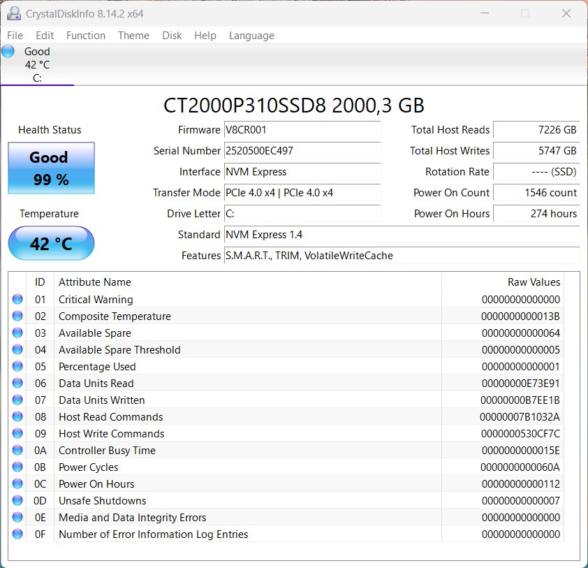 | Cyberpunk 2077 ultra external monitor * (Watt) | 45.2 | 39.7 12% | 42.1 7% | 46 -2% | 45.3 -0% | 34.2 24% | ||
