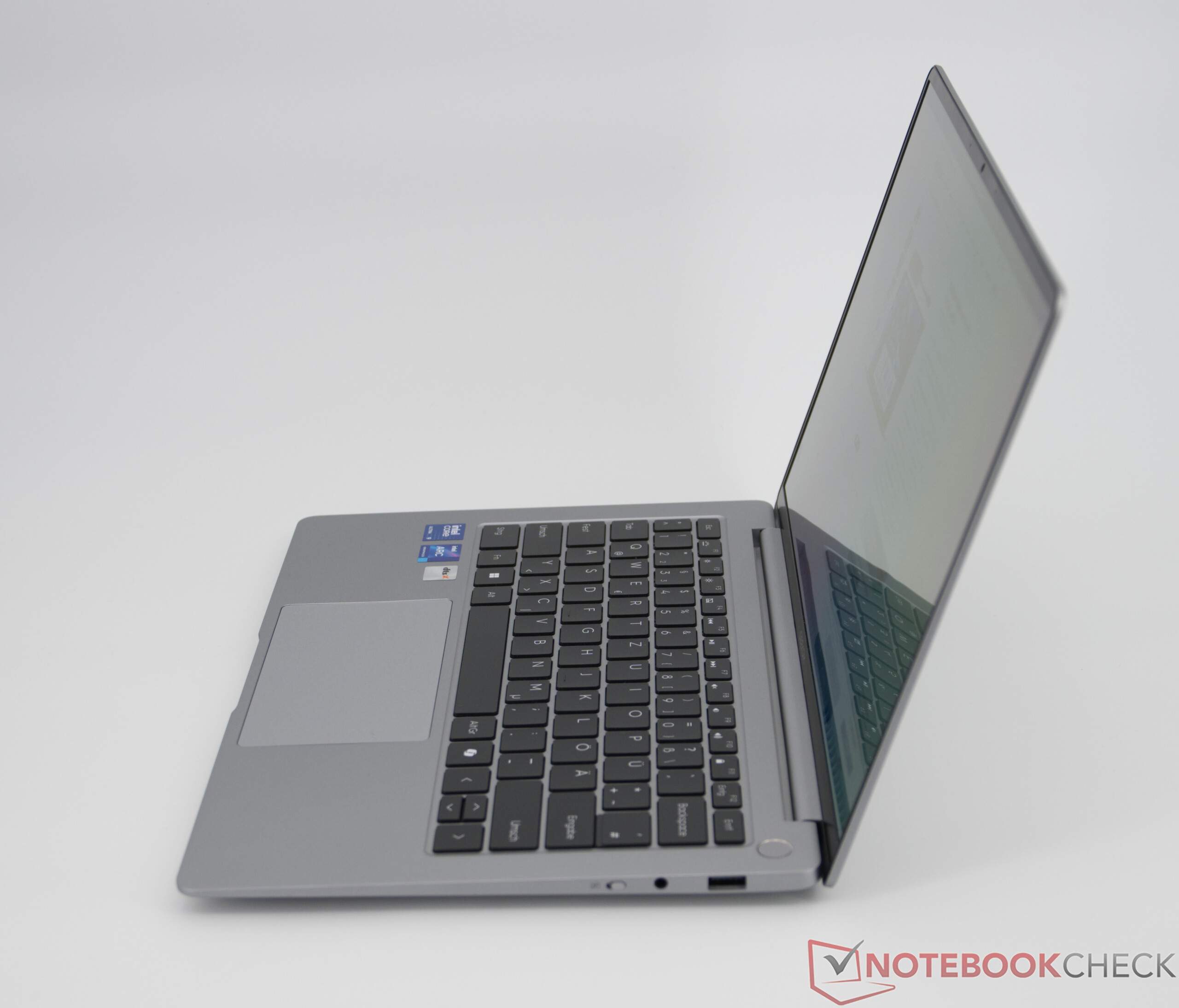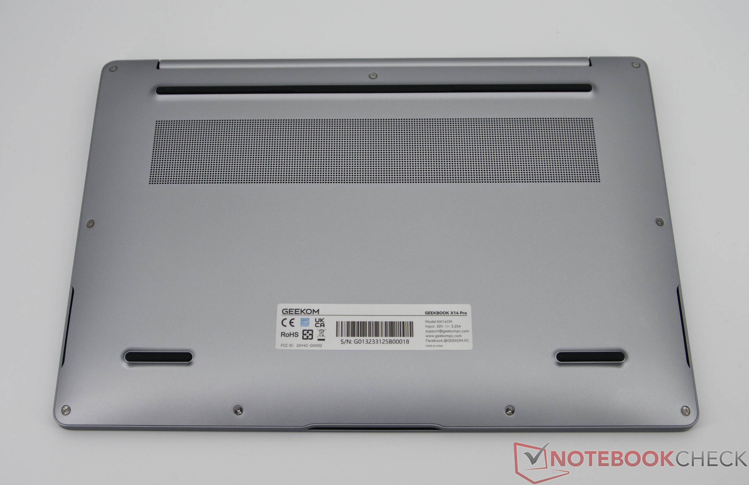 GeekBook X14 Pro, magnezyum alaşımından yapılmış özellikle hafif bir metal kasa, yüksek kaliteli bir kaplama ve şık ve çağdaş bir tasarım ile etkileyicidir. Düşük ağırlığına rağmen, ağır basınç altında hafif esneme noktaları oluşabilse bile dizüstü bilgisayar sabit görünüyor - ultra hafif cihazların tipik bir uzlaşması. Menteşeler sağlam, günlük kullanım için uygun ve ekranı iyi bir şekilde yerinde tutuyor.