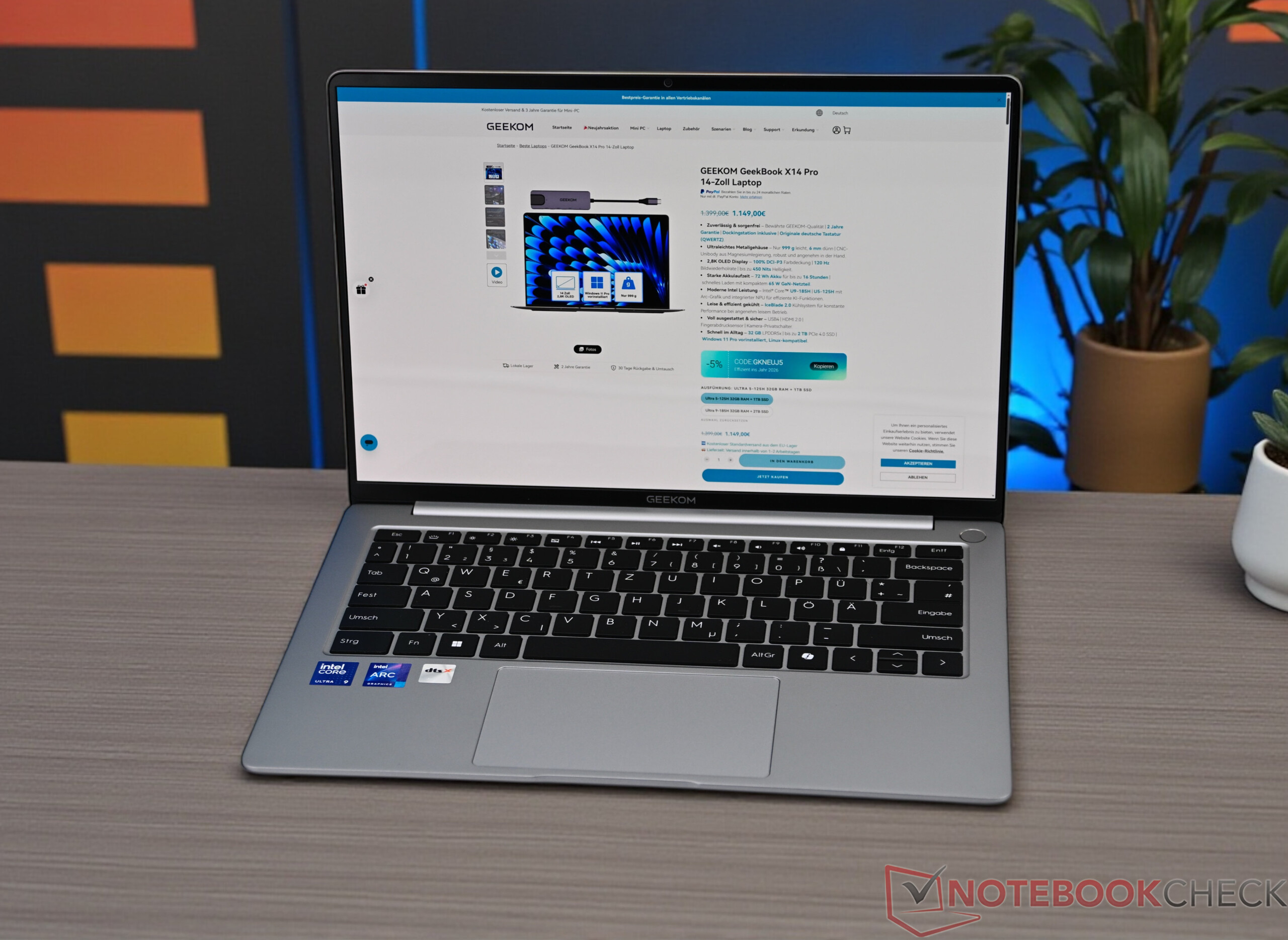 GeekBook X14 Pro'nun yüksek çözünürlüklü OLED ekranı (2.880 × 1.800 piksel) çok yüksek kaliteli bir izlenim bırakır ve dizüstü bilgisayarın güçlü yönlerinden biridir. Renkler aynı anda canlı ve doğal görünürken, yüksek kontrast derin siyahlar ve çok canlı bir görüntü sağlar. İçerik, hem görüntü düzenleme hem de medya tüketimi için etkileyici olan keskin ve zengin ayrıntılara sahip görünüyor. Bu durum, neredeyse mükemmel renk alanı kapsamıyla da destekleniyor. Yüksek yenileme hızı da günlük yaşamda hoş ve pürüzsüz bir görüntü sağlıyor. OLED teknolojisi sayesinde, özellikle karanlık içeriklerde fark edilen tipik haleler yok. Genel olarak panel, açıkça tanınabilir premium bir karaktere sahip modern, canlı bir görüntü kalitesi sunuyor. Bir eleştiri noktası, üreticinin teknik özelliklerde iddia ettiği 450 cd/m²'lik reklamı yapılan ekran parlaklığına ulaşılamamasıdır.