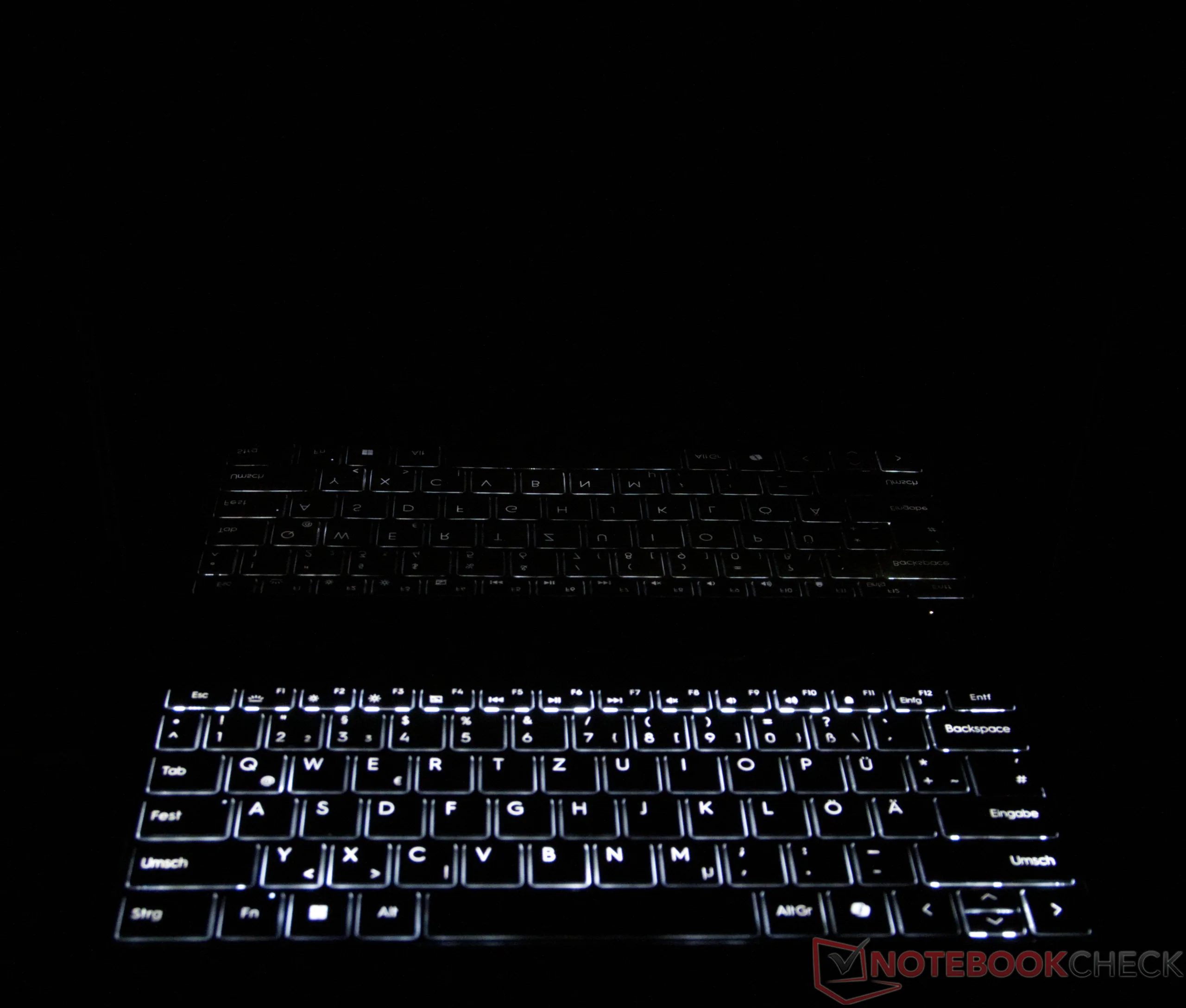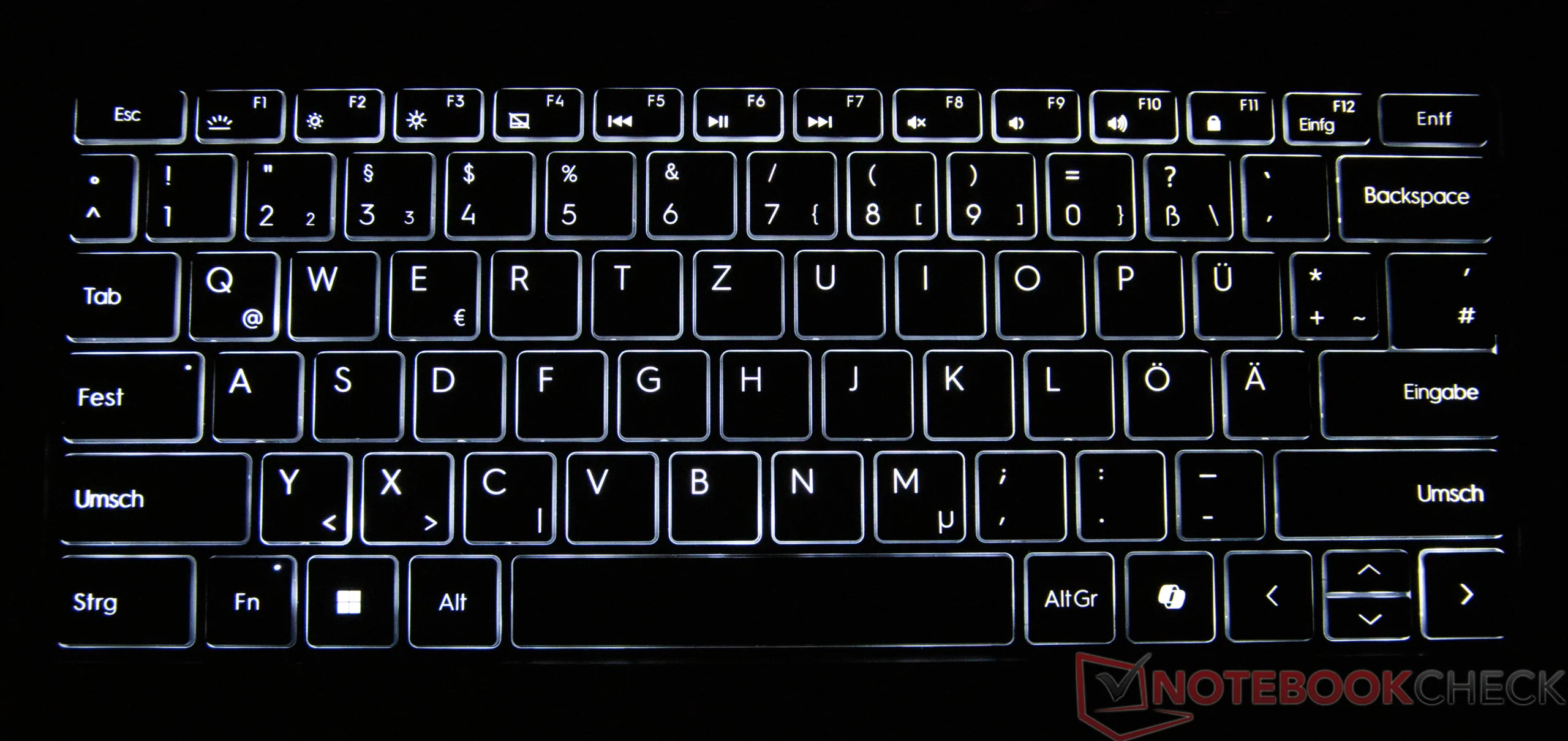 GeekBook X14 Pro'nun klavyesi, açıkça algılanabilir bir basınç noktası ile eşleştirilmiş düşük tuş hareketi sunar. Tuşlar hassas bir yazma hissi sağlar, bu da geri bildirim biraz daha sert olmasına rağmen daha uzun yazma oturumlarını mümkün kılar. 12 × 7,2 santimetrelik dokunmatik yüzey güvenilir bir şekilde çalışıyor, girdileri hassas bir şekilde uyguluyor ve olağan çoklu dokunma hareketlerini destekliyor. Yüksek kalite hissi ve dikkat çekmeyen, iyi bastırılmış tıklama sesi, hoş kullanım kolaylığının altını çiziyor.