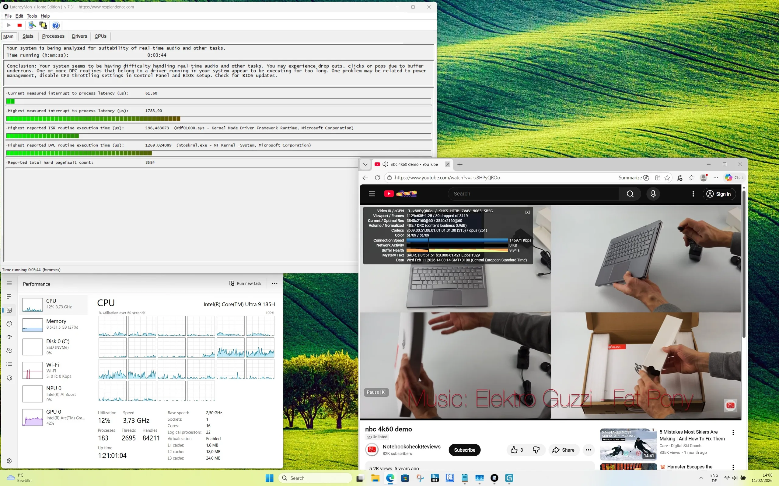 Günlük kullanımda, GeekBook X14 Pro sıcaklık açısından göze çarpmaz ve ofis, web veya akış gibi tipik uygulamalarda sadece biraz ısınır. Sadece daha zorlu görevler sırasında ısı gelişimi belirgin bir şekilde artar, ancak kritik hale gelmez veya avuç içi dayanaklarını rahatsız edici bir şekilde ısıtmaz. Kompakt soğutma sistemi ince kasaya göre uyarlanmıştır ve işlemci ile dahili bileşenlerin yük altında bile amaçlanan sıcaklık aralığında güvenilir bir şekilde çalışmasını sağlar.