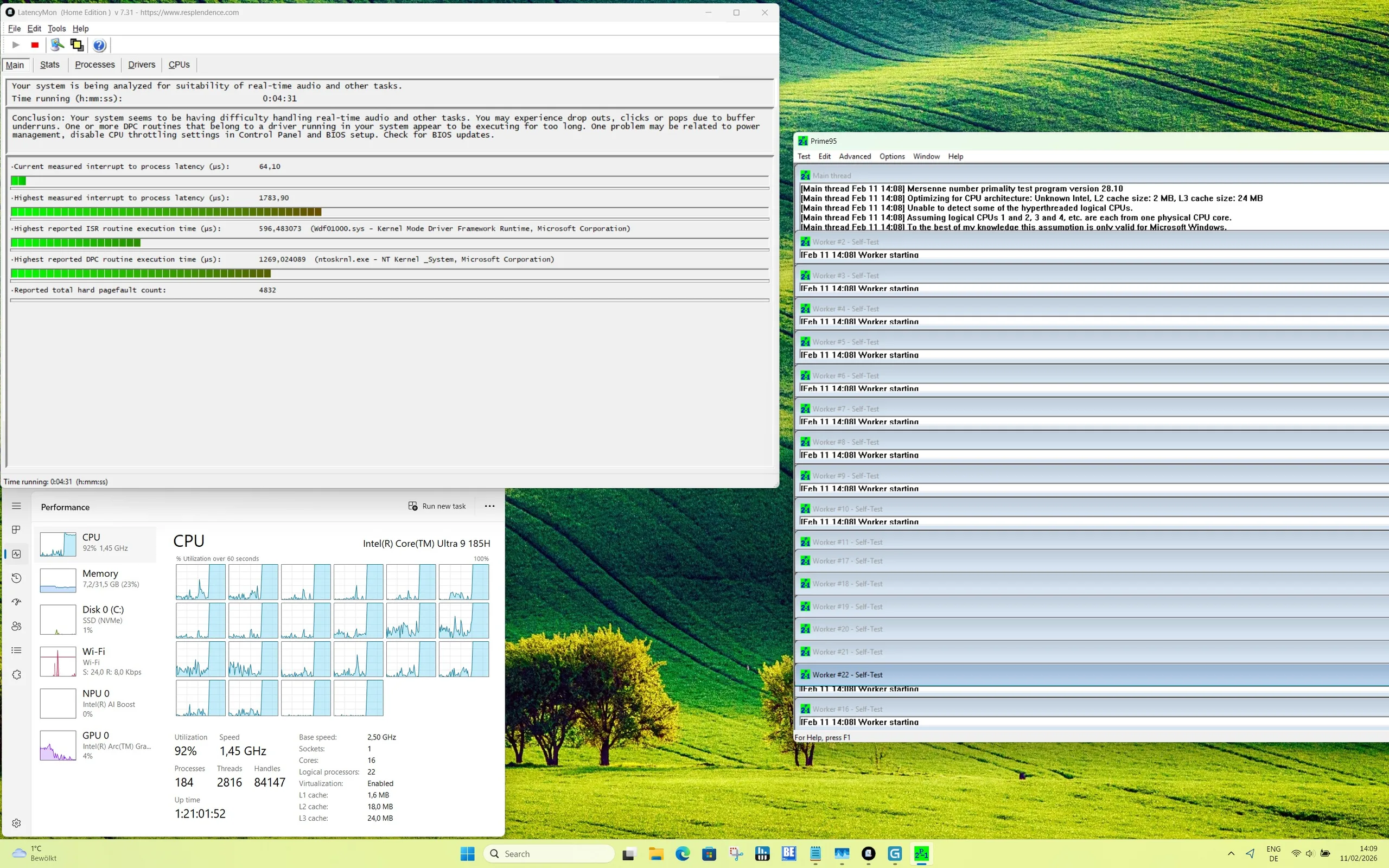Kısa süreler için 45 watt ve sürekli olarak yaklaşık 35 watt güç tüketimi ile Intel Core Ultra 9 185H geekBook X14 Pro, Intel'in SoC için belirlediği minimum değeri sağlayan sağlam bir performans sunar. Turbo kullanımının düşük marjı, aynı işlemciye sahip diğer cihazlara kıyasla daha kötü sonuçlara neden oluyor. Karşılaştırmamızda GeekBook X14 Pro orta sahada kendine yer edinebiliyor ve sık sık Dell 14 Plus. Sürekli yük altında performans biraz düşüyor ve ardından sabit bir seviyede dengeleniyor - özellikle hafif ultrabooklar için yaygın bir davranış.