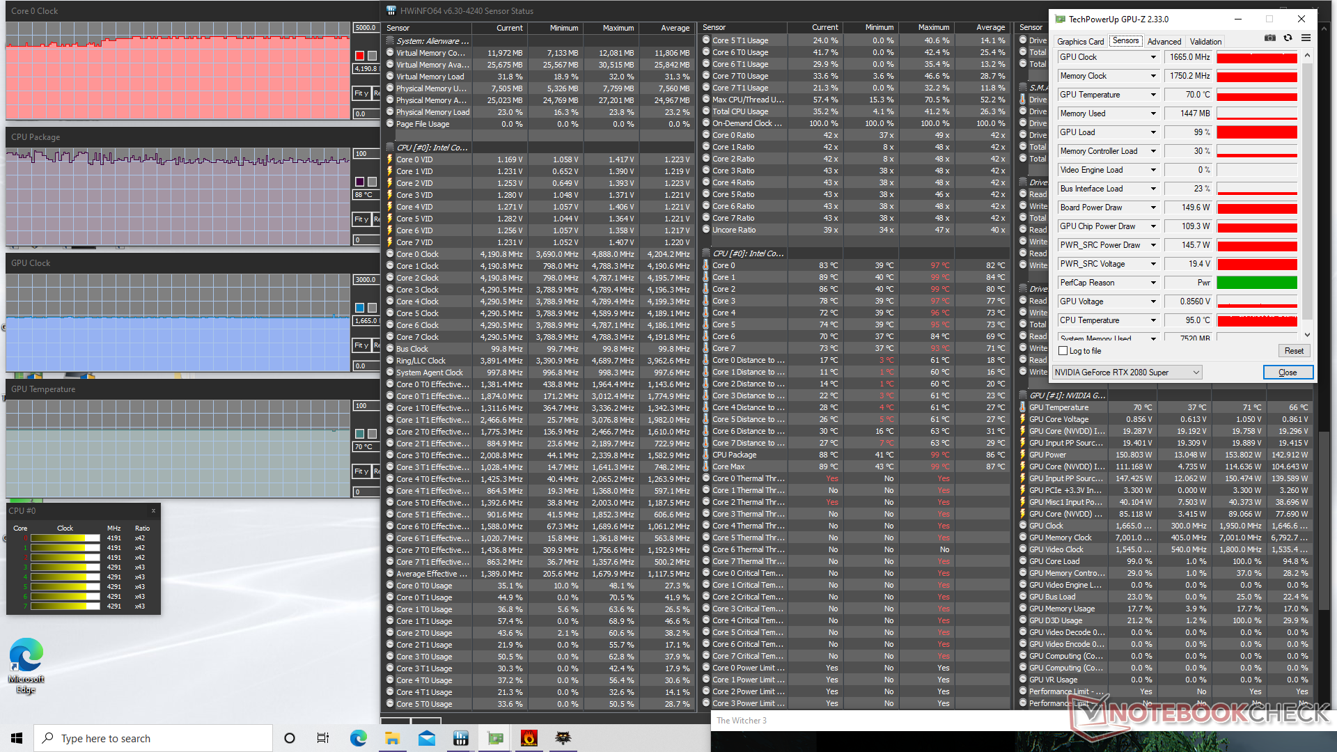 | Witcher 3 Stress (Performance mode) | 4.1 - 4.3 | 1635 | 89 | 78 |