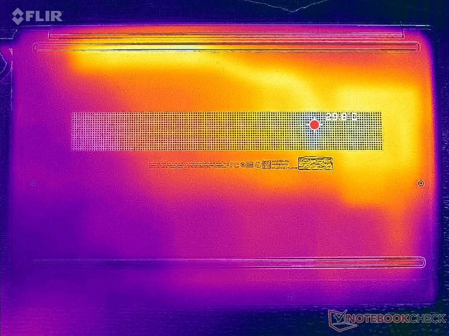 Soğutma çözümünün tasarlanma şekli nedeniyle dizüstü bilgisayarın sol yarısı sağ yarısından belirgin şekilde daha sıcak hale geliyor. WASD tuşlarındaki sıcak nokta, numpad'deki sadece 30 C'ye kıyasla uzun süre zorlu yükleri çalıştırırken 40 C'ye kadar ısınabilir.