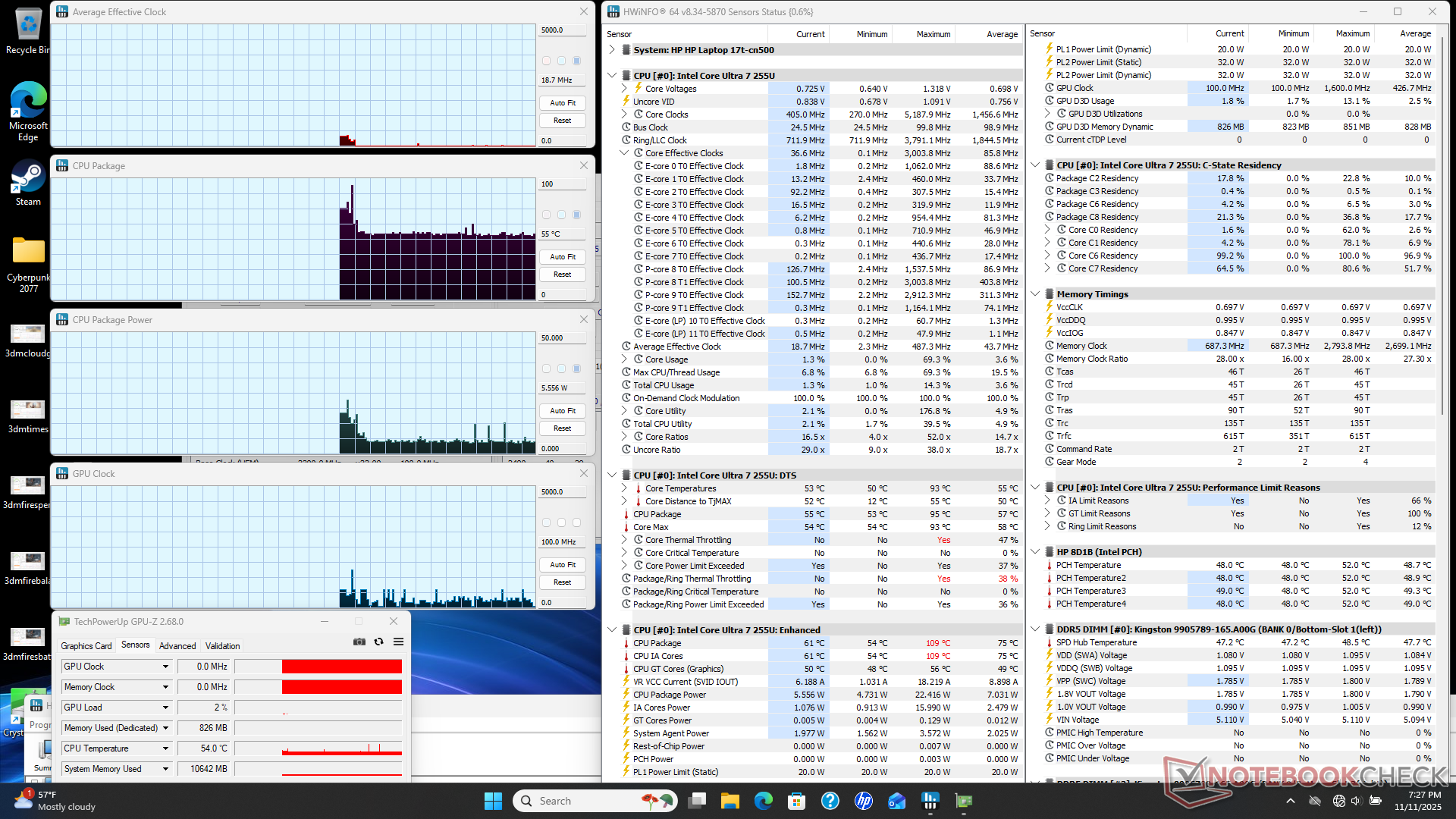| Ortalama CPU Saati (GHz) | GPU Saati (MHz) | Ortalama CPU Sıcaklığı (°C) | ||