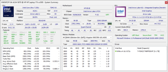 | HP 17t-cn500 Ultra 7 255U, Graphics 4-Core iGPU (Arrow Lake), TeamGroup T-Force G50 TM8FFE004T, IPS, 1920x1080, 17.3" | HP 17-ca1149ng R5 3500U, Vega 8, Intel SSD 660p SSDPEKNW512G8, IPS, 1920x1080, 17.3" | LG gram 17 2025 (17Z90TL) Core Ultra 7 258V, Arc 140V, , IPS, 2560x1600, 17" | Lenovo V17 G4 IRU U300, UHD Graphics Xe G4 48EUs, WD PC SN740 512GB SDDPMQD-512G-1101, IPS, 1920x1080, 17.3" | Lenovo IdeaPad Slim 5 16AKP10 Ryzen AI 5 330, Radeon 820M, Western Digital PC SN5000S SDEPMSJ-512G, IPS, 1920x1200, 16" | Asus Vivobook S16 S3607QA SD X1-26-100, Adreno X1-45 1.7 TFLOPS, Micron 2500 MTFDKBA512QGN, IPS, 2560x1600, 16" | |