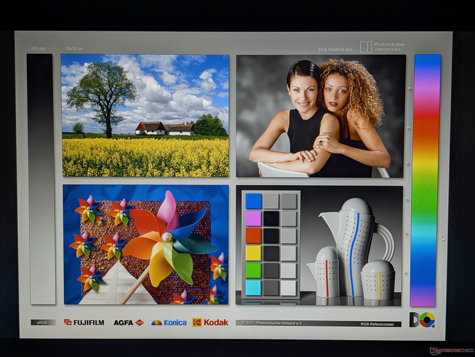 Chi Mei IPS panel, sınırlı sRGB kapsamı ve hem ortalama parlaklık hem de siyah-beyaz tepki süreleri ile olabildiğince basittir. Kontrast oranı yaklaşık 1500:1 ile ucuz bir dizüstü bilgisayar için şaşırtıcı derecede iyi, ancak orta derecede arka ışık kanaması ve dar renk alanı, temel multimedya kullanım durumları için yeterli.