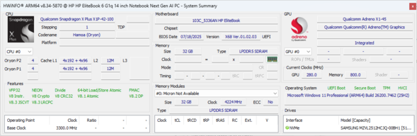 | HP EliteBook 6 G1q 14 Qualcomm Snapdragon X Plus X1P-42-100 ⎘ Qualcomm SD X Adreno X1-45 1.7 TFLOPS ⎘ 32 GB Bellek, 512 GB SSD | Amazon: Liste fiyatı: 1300 USD | 1.5 kg | 17 mm | 14.00" 1920x1200 162 PPI IPS | |