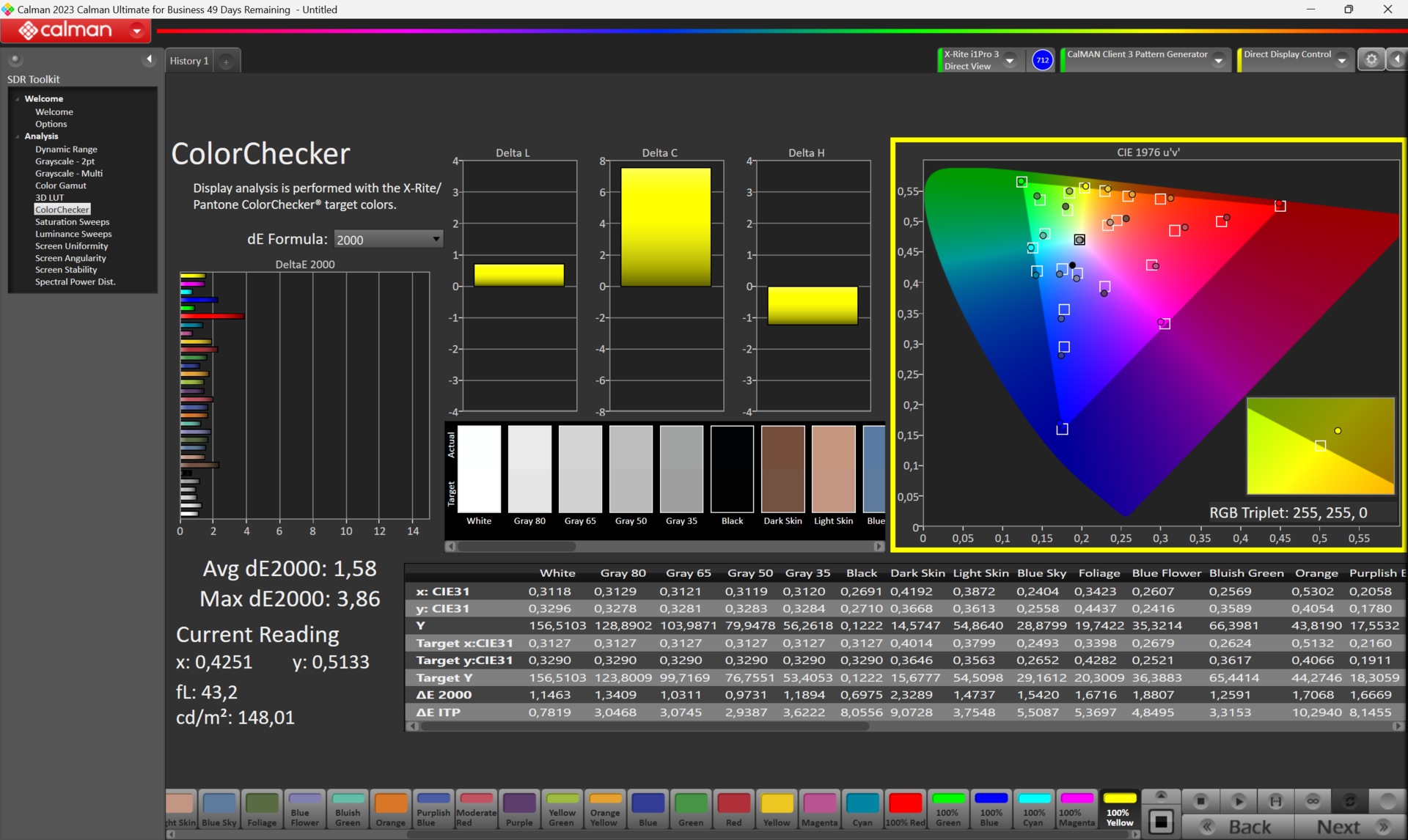 ΔE ColorChecker Calman: 3 | ∀{0.5-29.43 Ø4.78}