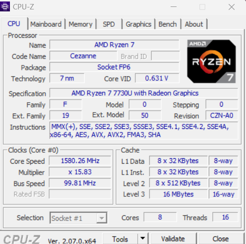 Ryzen 7 7730 CPU daha günceldir, ancak geçen yılki R7 5825U ile aynıdır. Performans 2023 için hala iyi ve rakip cihazlara ayak uydurabilir, ancak Ryzen 7 6800U veya Ryzen 7 7840U yapılandırma varyantları ile önemli ölçüde daha iyi olabilir.