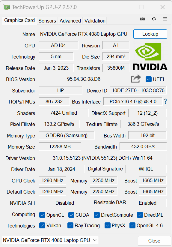 | HP Omen 16 (2024) GeForce RTX 4080 Laptop GPU, i9-14900HX, SK hynix PC801 HFS001TEJ9X101N | MSI Vector 16 HX A14V GeForce RTX 4080 Laptop GPU, i9-14900HX, WD PC SN560 SDDPNQE-1T00 | Alienware m16 R1 AMD GeForce RTX 4080 Laptop GPU, R9 7845HX, Kioxia XG8 KXG80ZNV1T02 | Acer Predator Helios 18 N23Q2 GeForce RTX 4080 Laptop GPU, i9-13900HX, Samsung PM9A1 MZVL22T0HBLB | HP Omen 16-wf000 GeForce RTX 4080 Laptop GPU, i7-13700HX, SK hynix PC801 HFS002TEJ9X101N | |