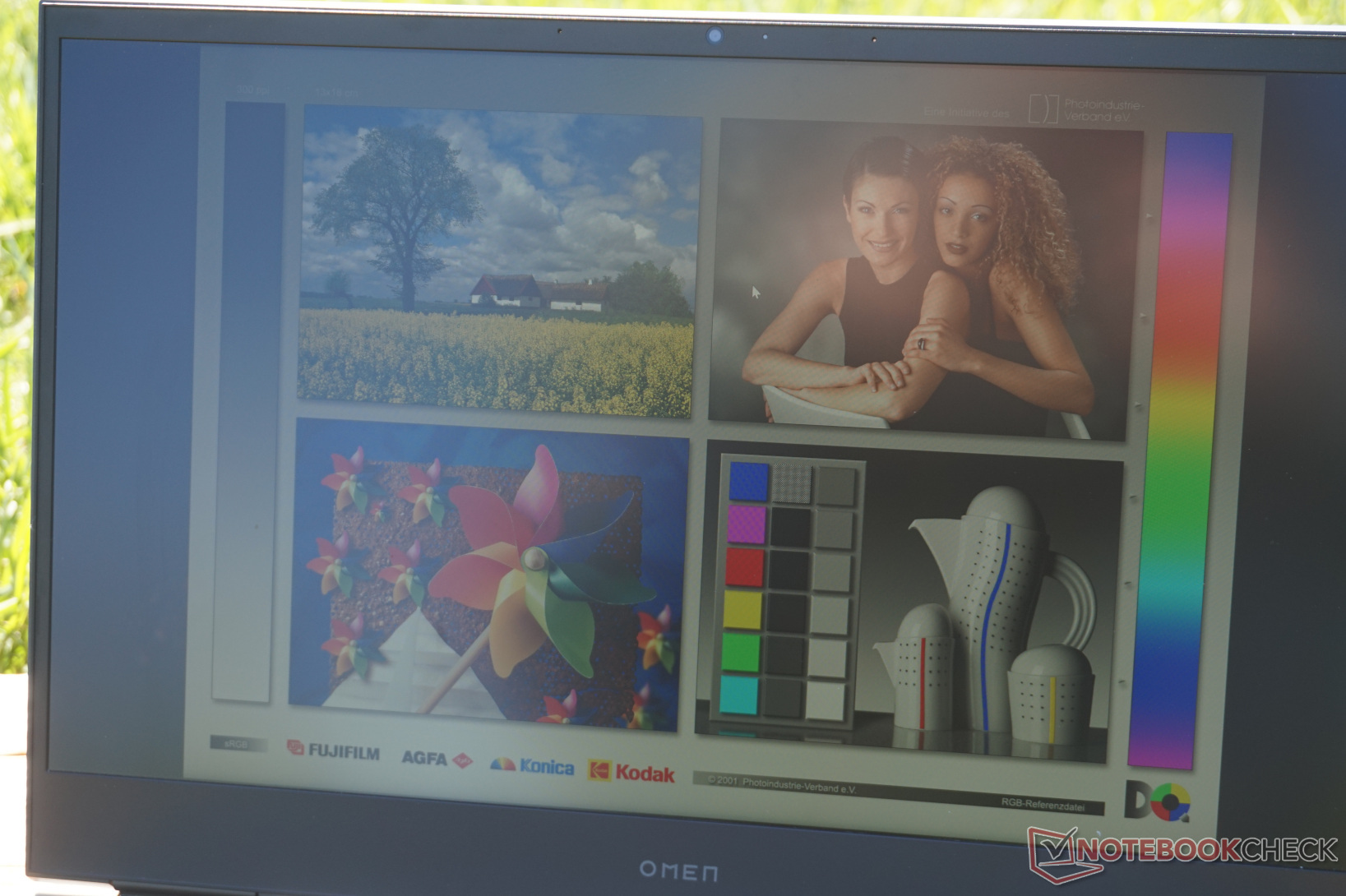 Önceki veya rakip model Omen 16-b085ng veya Victus 16 ile karşılaştırıldığında, HP tepe parlaklığı 400'den 300 cd/m²'ye düşürdü. Bir masa üzerinde ve iyi aydınlatılmış iş istasyonlarından uzakta kullanıldığında, fark neredeyse hiç fark edilmemelidir. Öte yandan, eşit aydınlatma olumlu bir nottur ve azaltılmış parlaklık nedeniyle ekran kanaması da daha az fark edilir. Test modelimizde, sağ alt köşede yalnızca minimal bir anormallik vardı.
