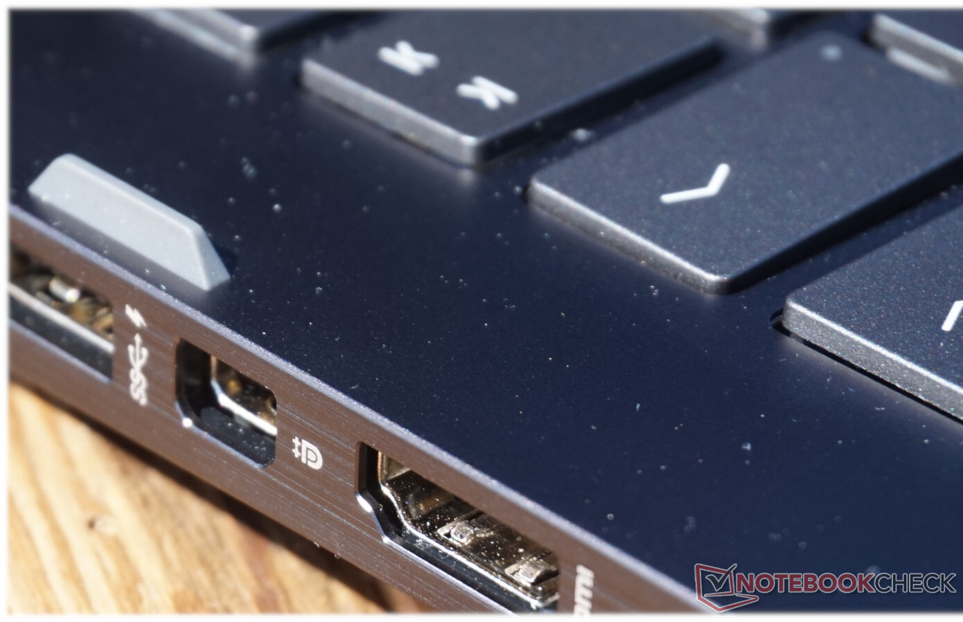 Kasanın hem solunda hem de sağında bulunan USB bağlantı noktaları, masadaki hemen hemen her şeyin sorunsuz bir şekilde bağlanmasına izin veriyor. Ancak, bireysel bağlantılar arasındaki mesafe bazen çok dardır. Sağdaki iki USB bağlantı noktası yalnızca 4 mm (~0,16 inç) genişlikle ayrılır.