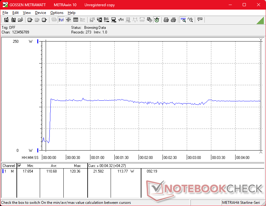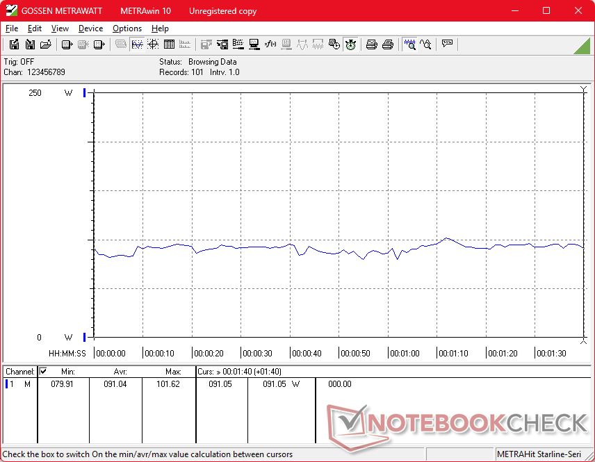 Pil kapasitesi, iGPU moduna ayarlandığında 8 saatin biraz üzerinde gerçek dünya WLAN çalışma süresi için 83 Wh ile 17 inçlik bir oyun dizüstü bilgisayarı için makul. Asus TUF Gaming A17 gibi rakipler veya Acer Nitro 5 AN517 karşılaştırıldığında biraz daha büyük pillere ve biraz daha uzun çalışma sürelerine sahiptir.