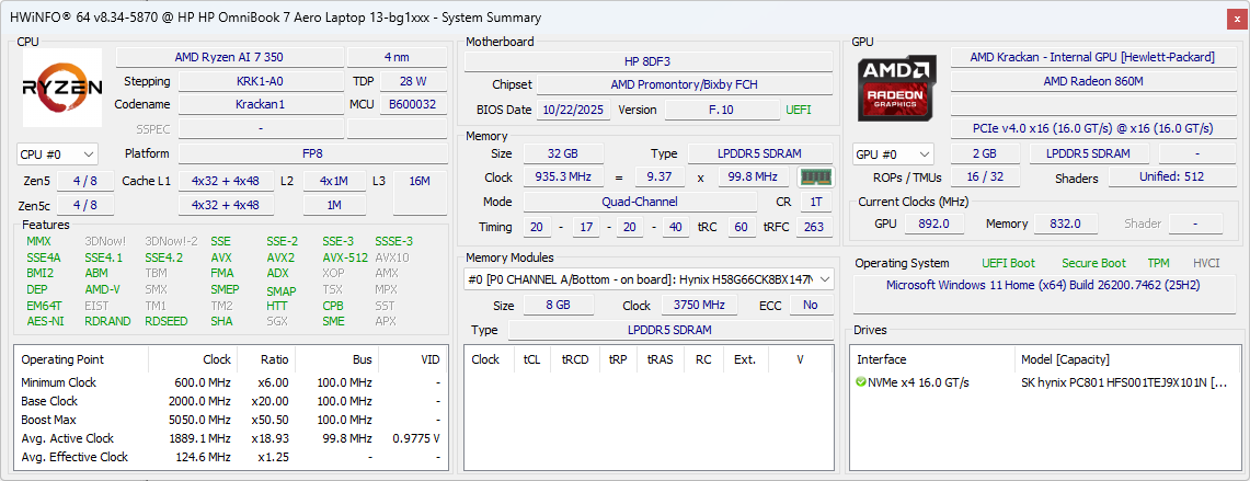 | HP OmniBook 7 Aero 13-bg1077nr AMD Ryzen AI 7 350 ⎘ AMD Radeon 860M ⎘ 32 GB Bellek, 1024 GB SSD | Amazon: $529.99 Liste fiyatı: 1250 USD | 1 kg | 17.6 mm | 13.30" 1920x1200 170 PPI IPS | |