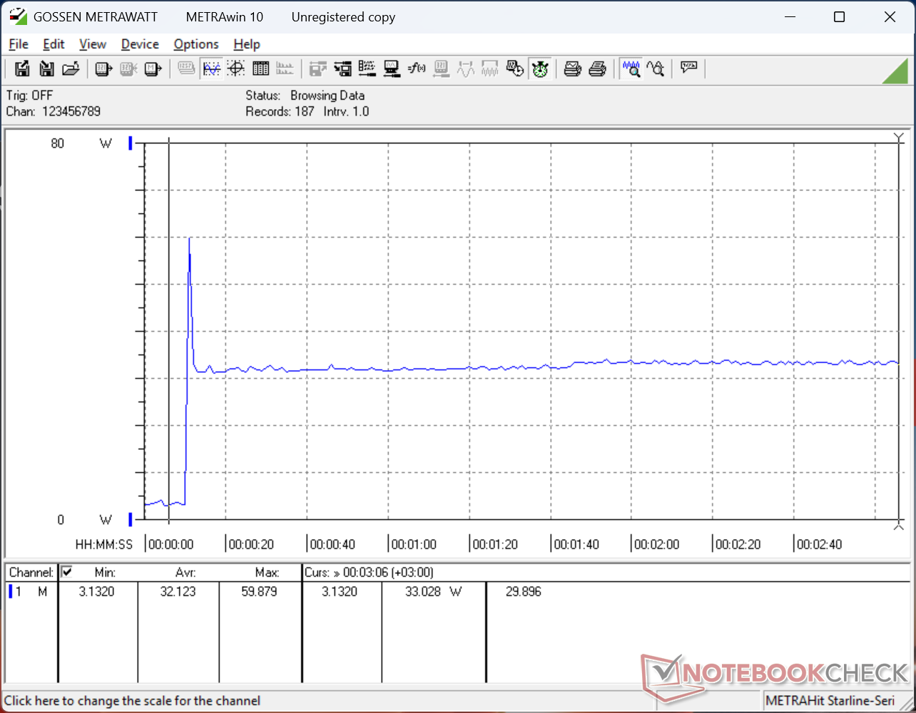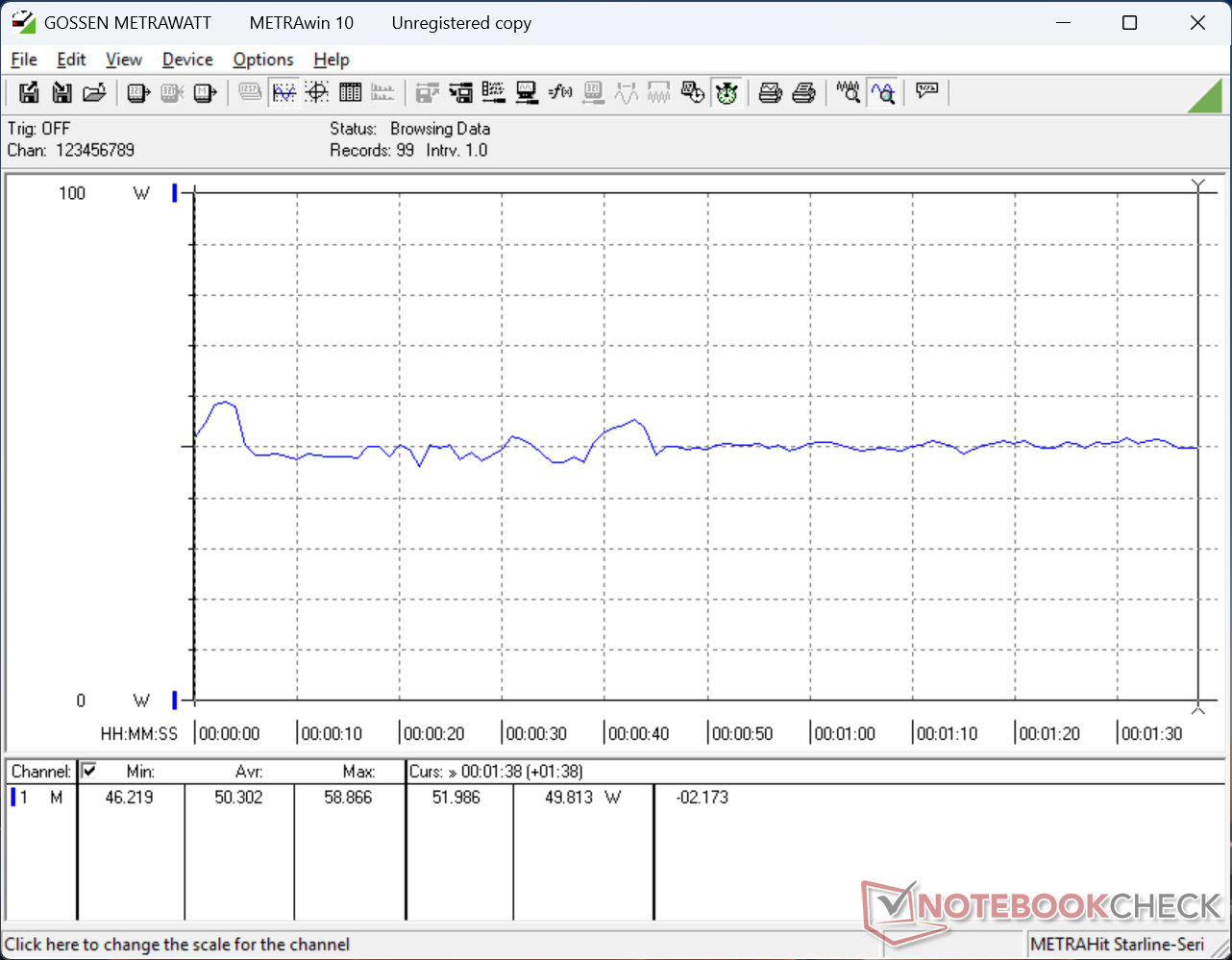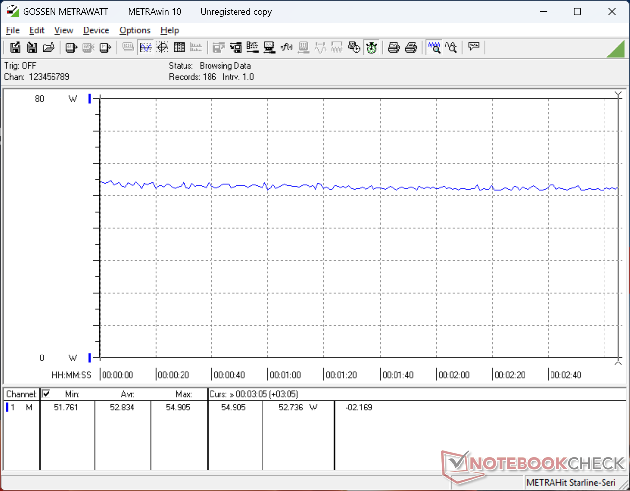 Genel tüketim Core Ultra H destekli MSI Summit E13 AI Evo'ya yaklaşırken, daha hızlı işlemci performansı ve benzer grafik performansı sunuyor. Cyberpunk 2077 'de rölantide çalışırken tüketimin 48 W'tan 35 W'a düşerek zaman içinde performansın yavaşladığını gösterdiğini ve bunun da yukarıdaki GPU Performansı bölümünde kaydedilen yavaşlayan kare hızlarımızı tamamladığını unutmayın.