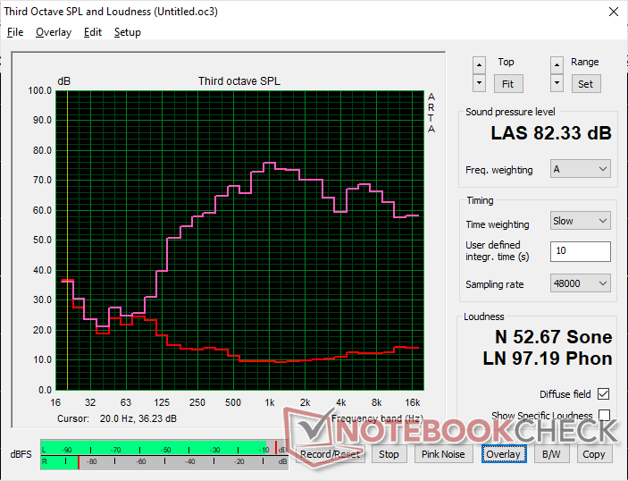 (+) | hoparlörler nispeten yüksek sesle çalabilir (82.3 dB)