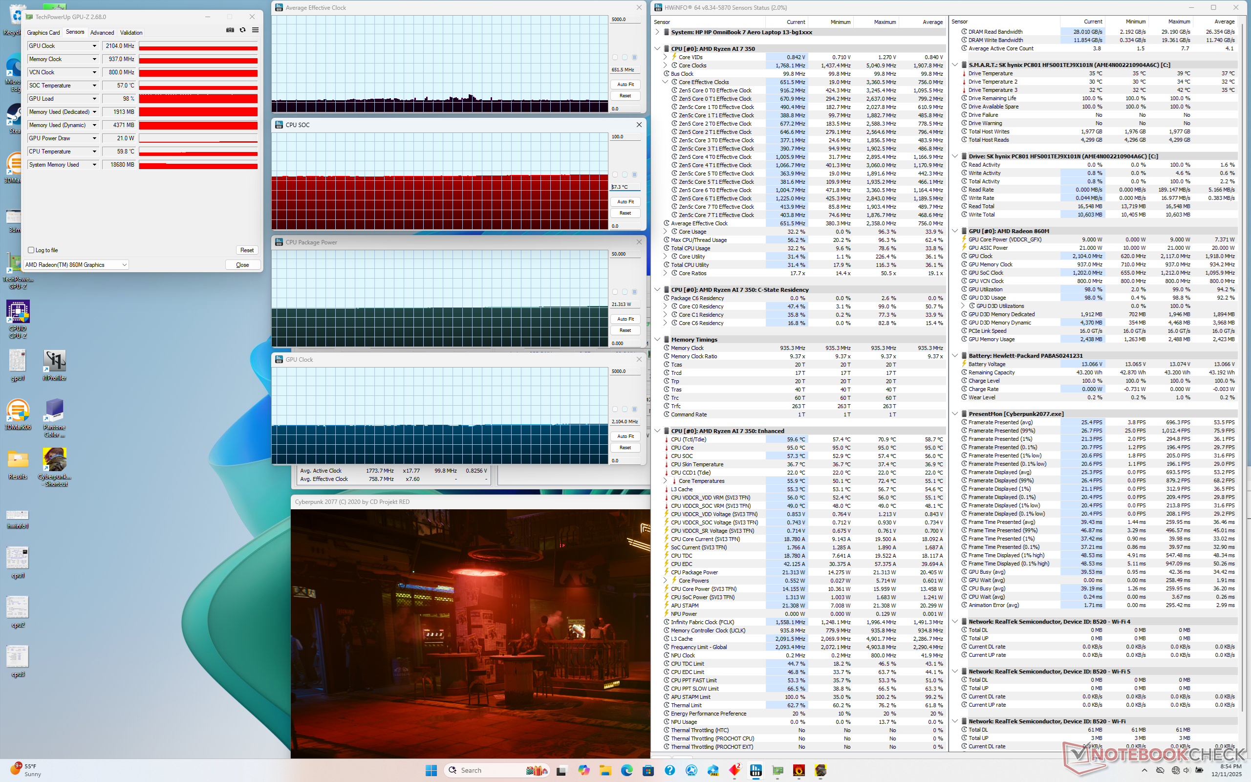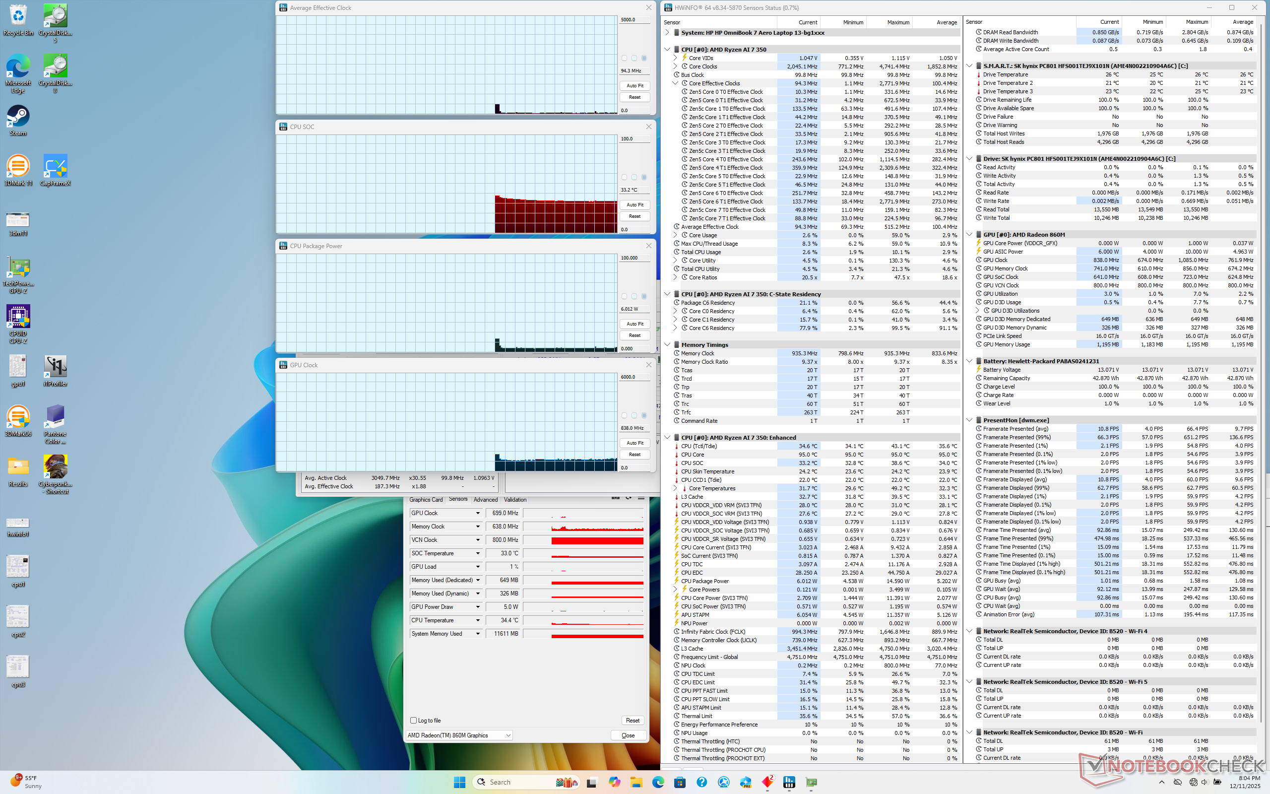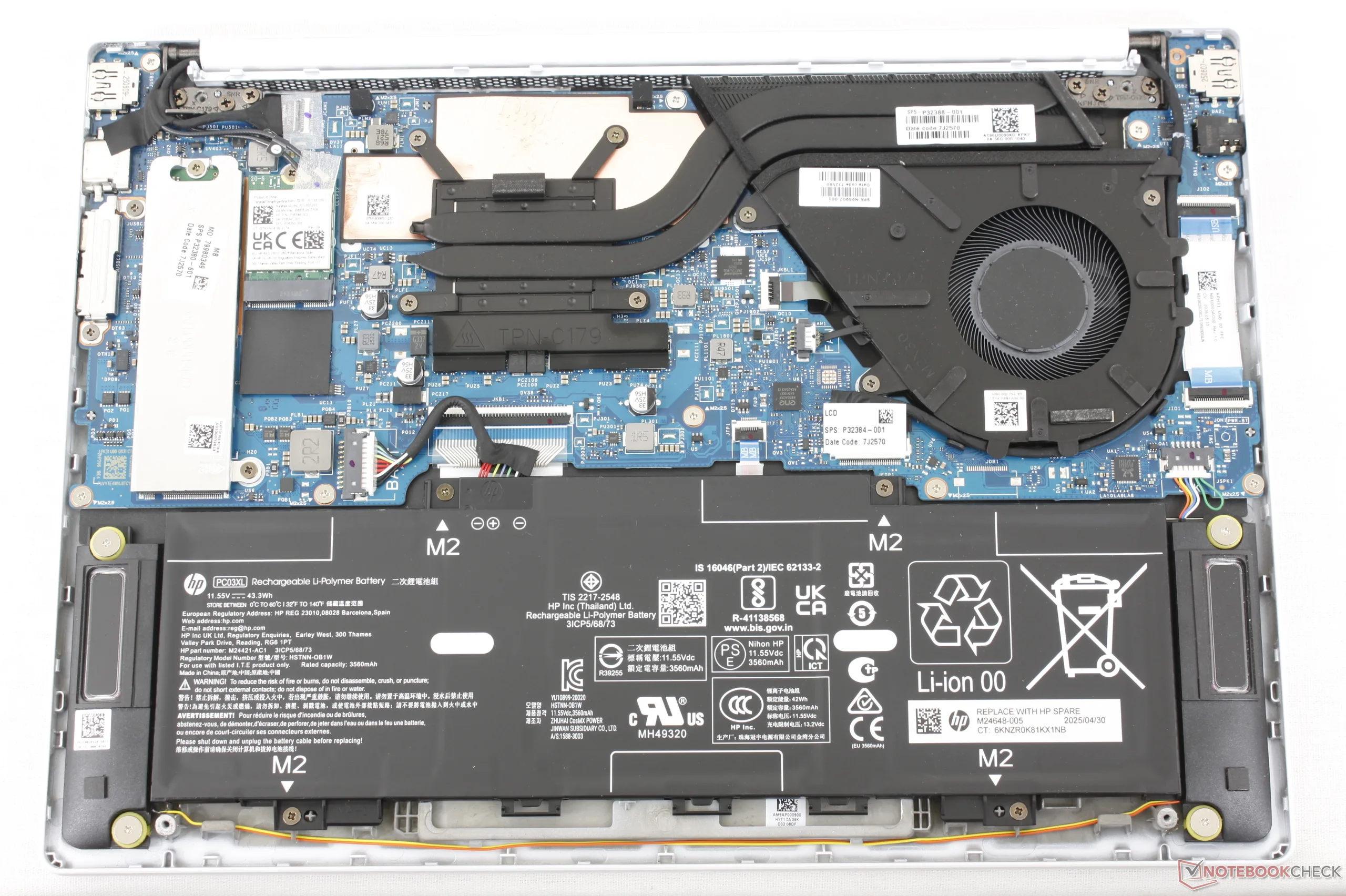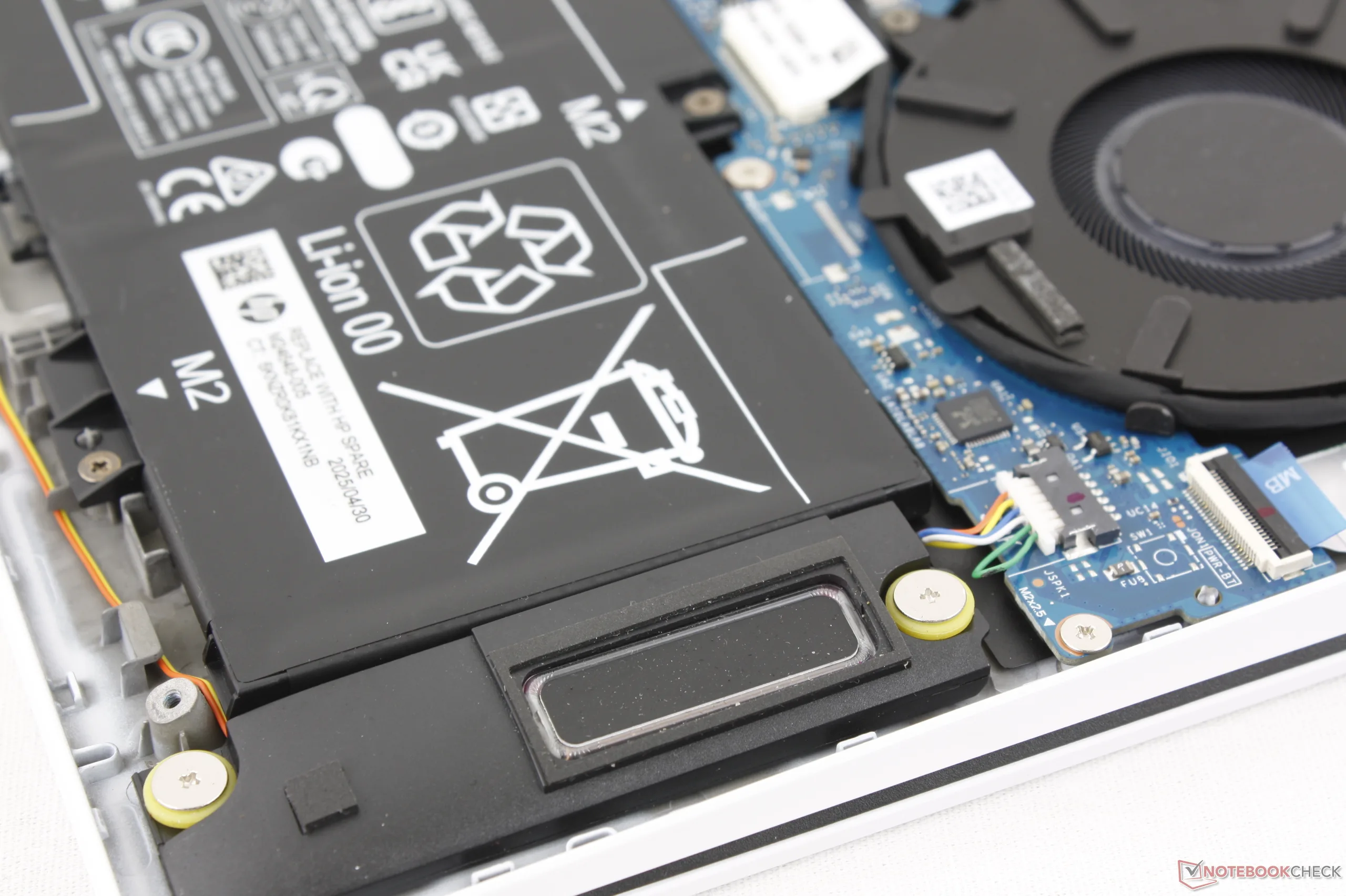 Pil kapasitesi sadece 43 Wh ile 13 inç form faktörü için bile küçüktür. MSI Summit E13 ve Asus ZenBook S13örneğin, sırasıyla daha büyük 70 Wh ve 63 Wh pil paketlerine sahiptir. OmniBook Aero için daha küçük kapasite açıkça ağırlık azaltma amaçlıdır.