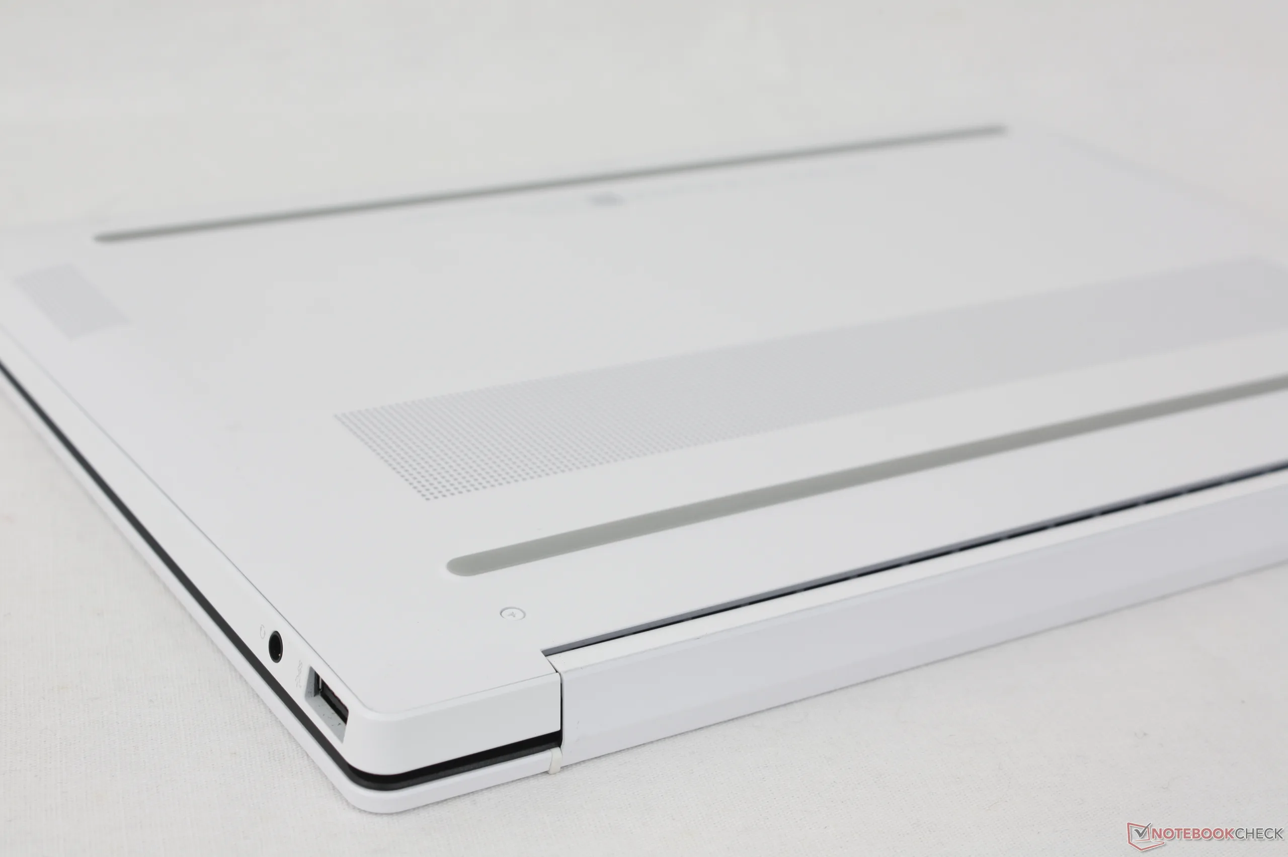 LG Gram gibi 1 kg'lık süper hafif dizüstü bilgisayarlar için dikkate değer bir dezavantaj, Toshiba Portegesamsung Galaxy Book veya Asus ZenBook S 13'ün taban ve kapaklarının Dell XPS, Lenovo Yoga 9 veya HP Spectre modelleri gibi "normal" ağırlıktaki alt dizüstü bilgisayarlardan çok daha kolay esneme eğiliminde olmasıdır. Şaşırtıcı bir şekilde, OmniBook 7 Aero 13'ün tabanı beklenenden daha iyi ilk izlenimler için oldukça sert. Kapak esnemeye karşı biraz daha hassas, ancak LG Gram veya Galaxy Book gibi rakip modellere göre yine çok daha az.