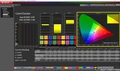 Kontrast oranı, artan siyah seviyesi nedeniyle biraz olumsuz etkileniyor. Panelin fabrika kalibrasyonu yok, bu da artan Delta-E-2000 değerlerine yansıyor. Kullanılan renk profilinden bağımsız olarak, renk sapmaları açıkça görülebiliyor ve yalnızca manuel kalibrasyonla önemli ölçüde azaltılabiliyor.