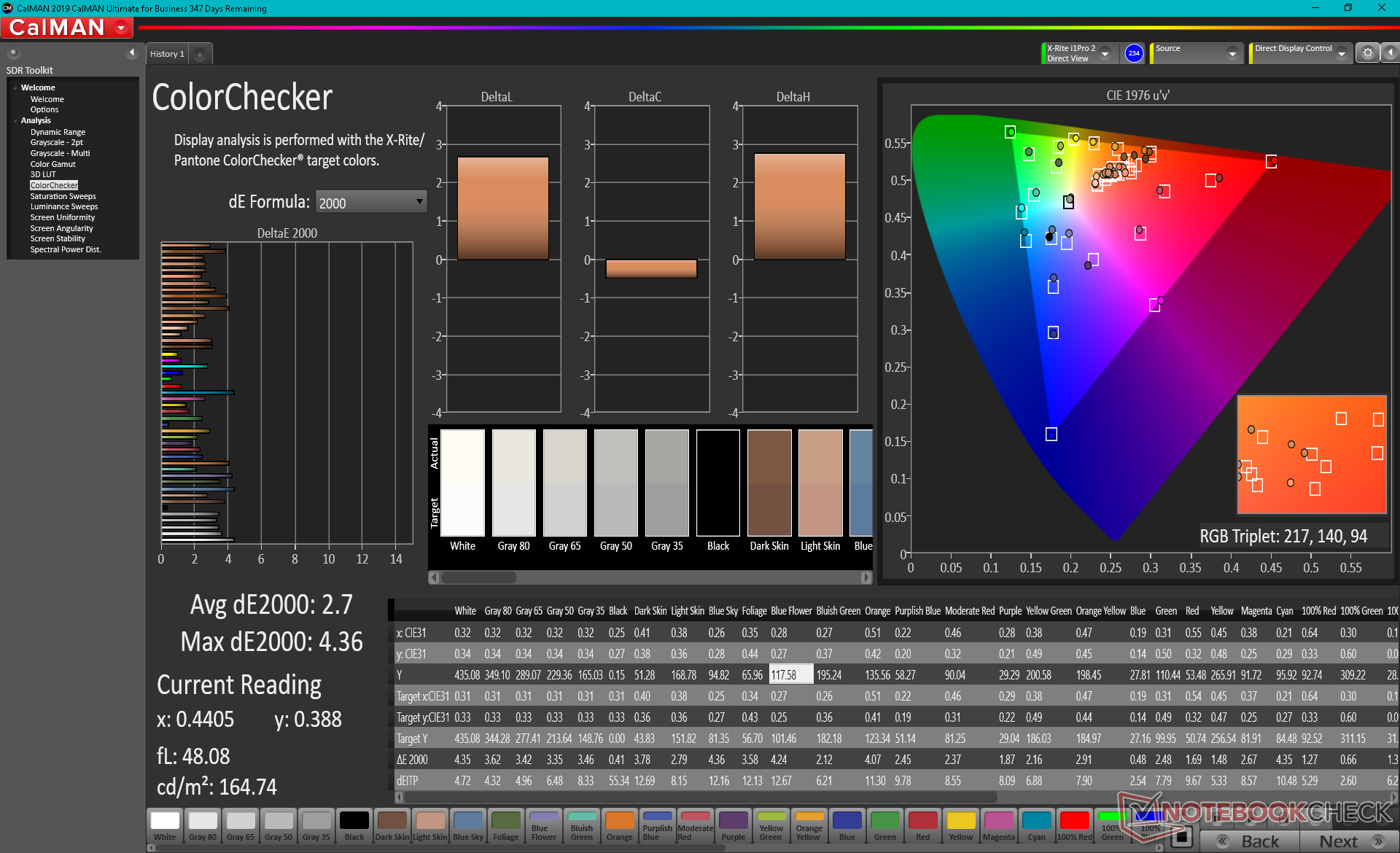 ΔE ColorChecker Calman: 2.7 | ∀{0.5-29.43 Ø4.78}