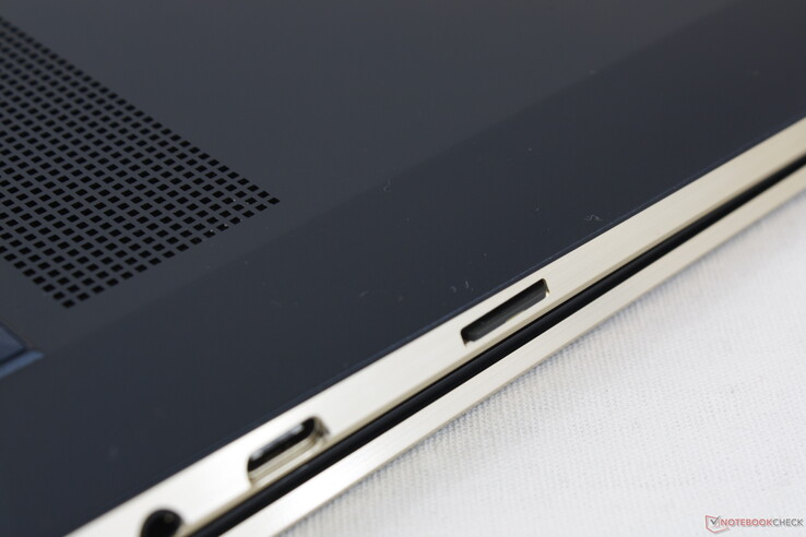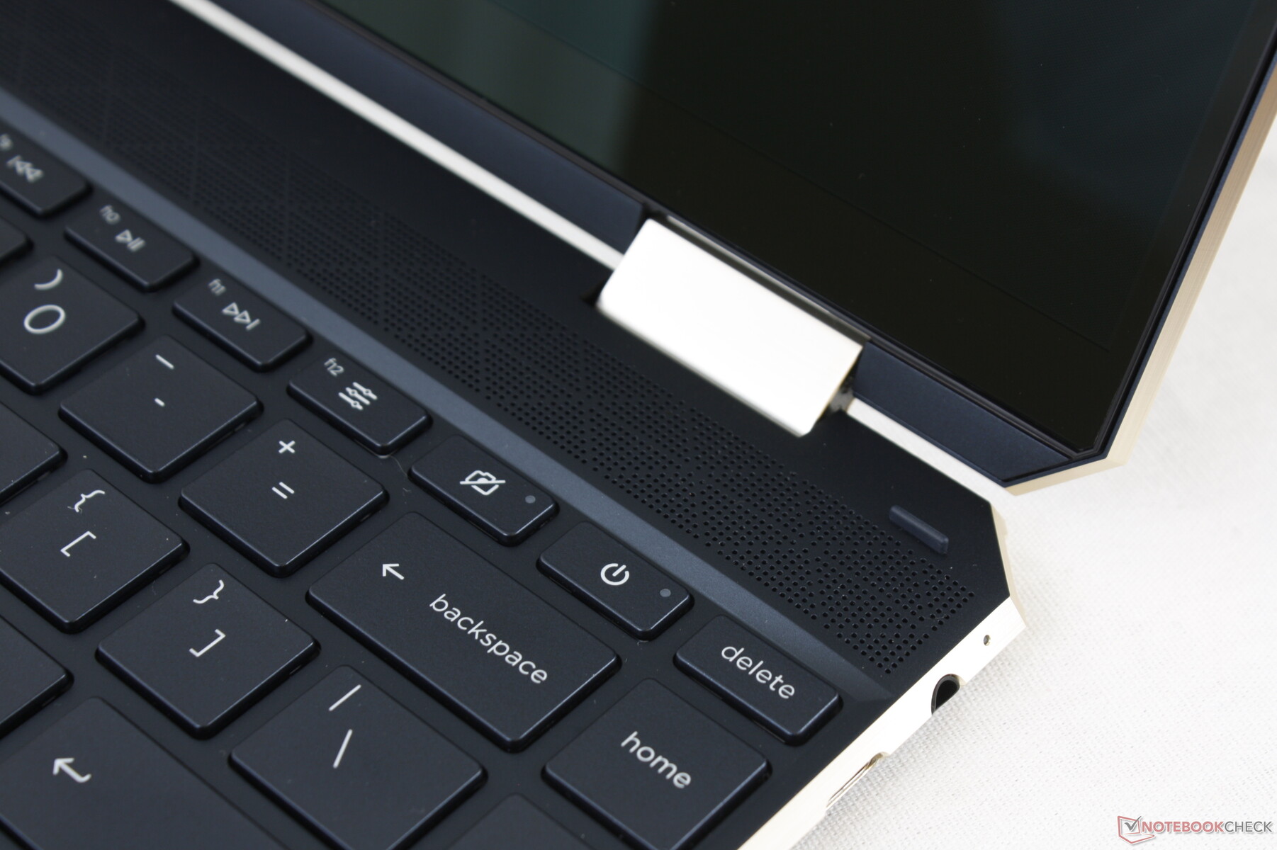 Bağlantı noktası seçenekleri Spectre x360 13 ile aynıdır, ancak birkaç küçük değişiklik vardır. İlk olarak, hem güç düğmesi hem de kamera kapatma anahtarı artık kasanın arka köşesi veya sağ kenarı yerine doğrudan klavyede. İkincisi, ekstra bant genişliğinden yararlanabilen kullanıcılar için Thunderbolt 3'e ek olarak her iki USB-C bağlantı noktası da artık Thunderbolt 4'ü destekliyor. Köşe USB-C bağlantı noktası ilk başta biraz garip gelebilir. Hem sol hem de sağ kenarlarda bir USB-C bağlantı noktasını tercih ederdik, böylece kullanıcılar dizüstü bilgisayarı her iki tarafta da Razer Book 13'teki gibi şarj edebilir.