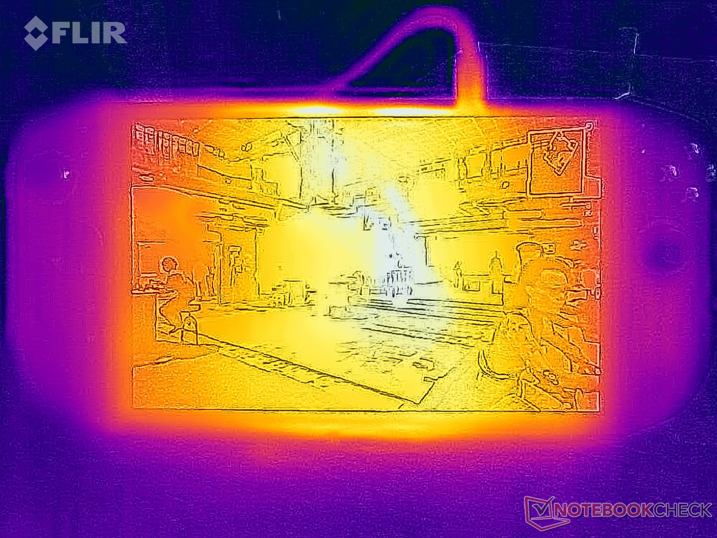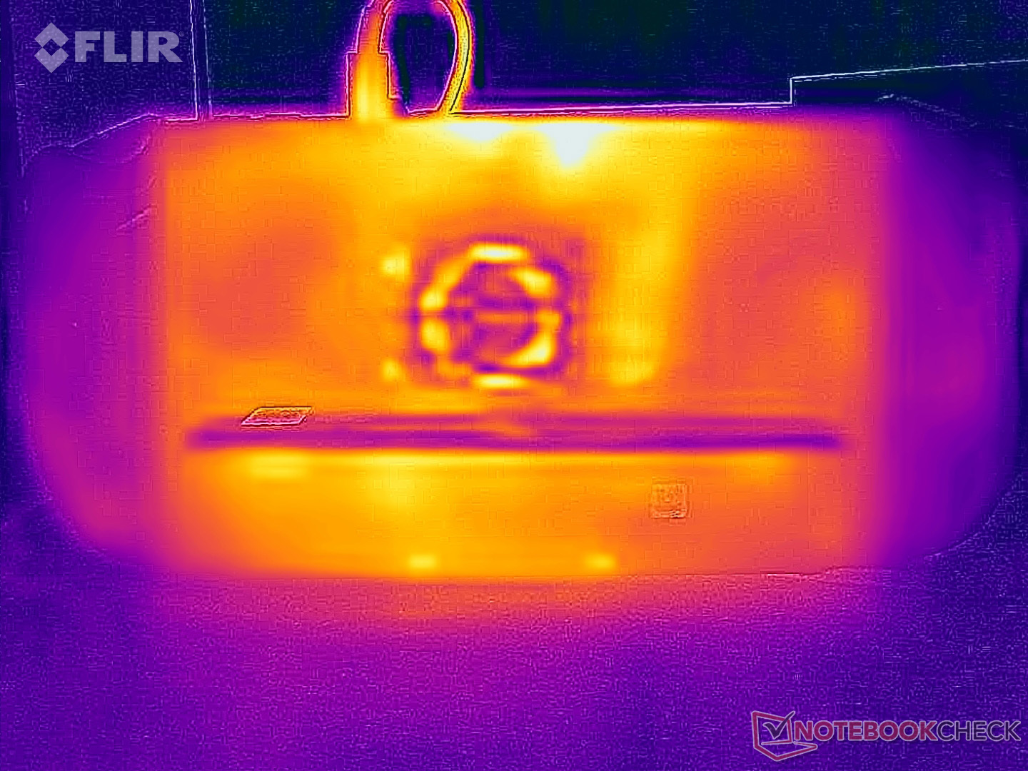 (-) 3: The average temperature for the upper side is 40 °C / 104 F, compared to the average of 32.8 °C / 91 F for the class Handheld / UMPC.