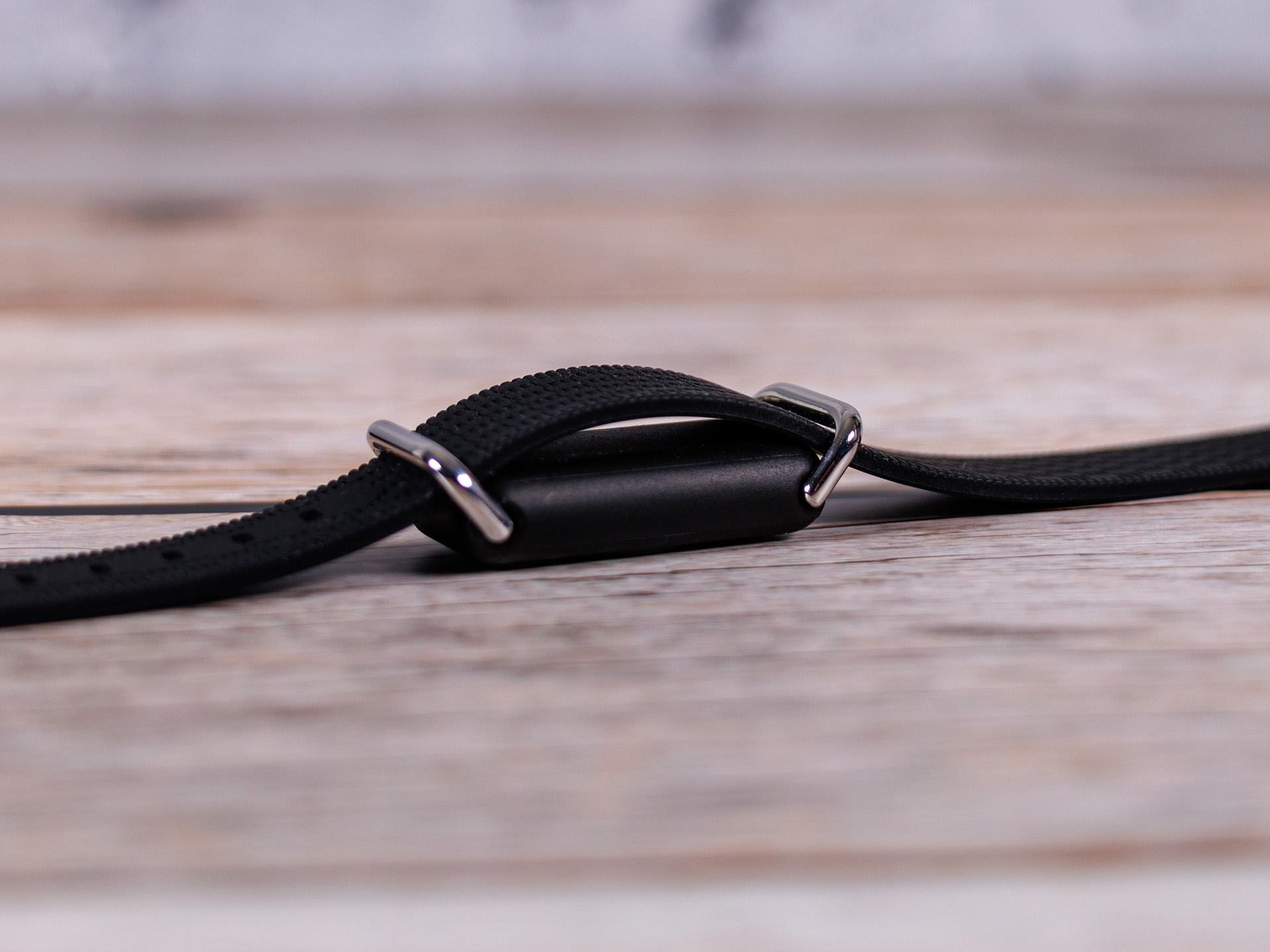 Hilo Band'ın kasası plastikten yapılmıştır ve bilekliğin içinden geçirildiği iki paslanmaz çelik elemanla tamamlanmaktadır. Bileklik hipoalerjenik silikondan yapılmıştır ve bu nedenle cilt dostudur. Kombinasyon işlevsel ve göze batmayan, ancak sağlamdır. Yedek bileklikler çeşitli renklerde mevcuttur.