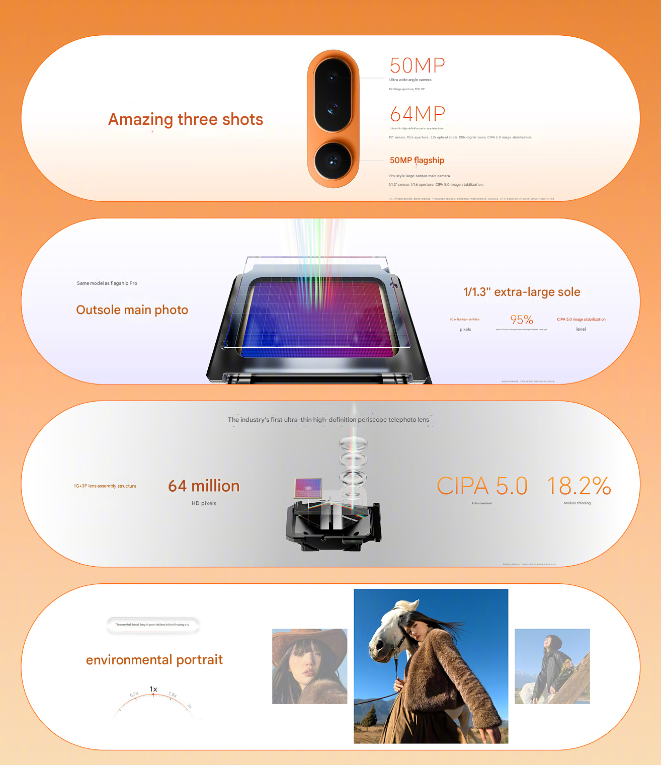Honor magic 8 Pro Air'in kamera kurulumunu daha da vurguluyor. Arka kısımda üç kamera bulunuyor ve birincil kamera 1/1.3 inç boyutunda 50 MP'lik bir atıcı ve f/1.6 diyafram açıklığı. 3,2x optik zoom özellikli 64MP telefoto ve 50MP ultra geniş ile eşleştirilmiştir. Ön tarafta 50MP selfie atıcısı bulunuyor.
