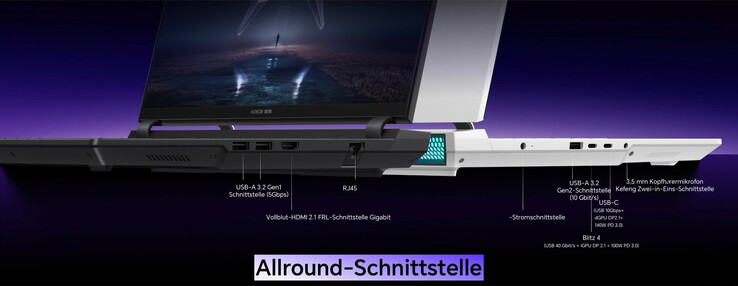 Bu sayede sıcak havanın kasadan daha etkili bir şekilde dışarı atılması amaçlanıyor. Honor 'a göre, dizüstü bilgisayar bu fanlar sayesinde yüzde 12,5'e kadar daha fazla ısı dağıtabiliyor. Güç tüketimi 170 watt ile sınırlı olan Honor Win H9 aynı zamanda son derece sessiz olmalıdır - Honor fan gürültüsünün 38 dB olduğunu belirtiyor, ancak bunun hangi mesafeden ölçüldüğünü belirtmiyor. Soğutma sistemi tam olarak kullanılırsa, dizüstü bilgisayar 270 watt'a kadar gücü kaldırabilir