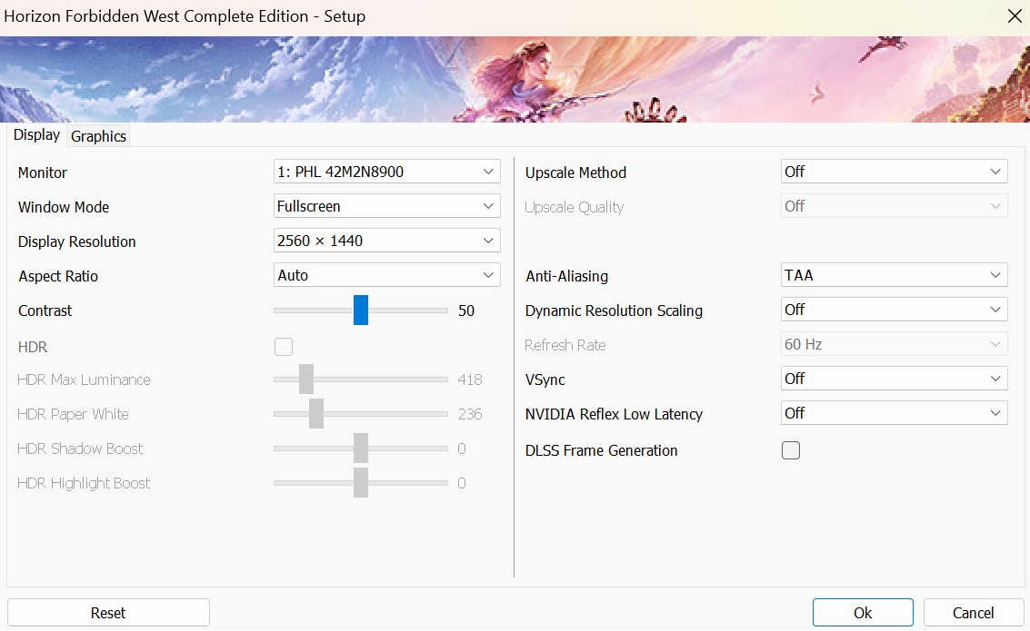 Mevcut ayarların çokluğu nedeniyle, seçenekler iki menüye ayrılmıştır ve oyun dışında da rahatlıkla erişilebilir. İlk olarak, Ekran sekmesi çözünürlüğü, ekran modunu ve yükseltme yöntemi (DLSS, FSR ve XeSS), kenar yumuşatma (SMAA, TAA ve DLAA), Nvidia Reflex ve Kare Üretimi gibi bir dizi diğer ayarı yapmanızı sağlar.