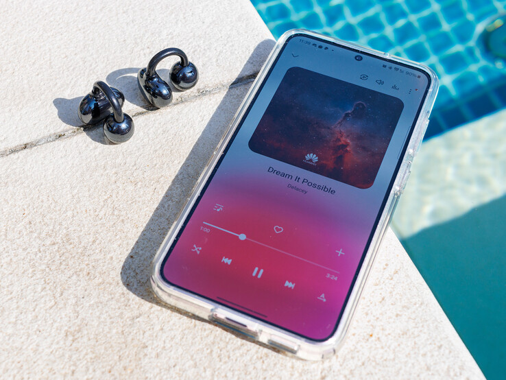 Huawei FreeClip, Huawei FreeClip ile aynı sürücüleri kullanır FreeBuds 5 ve Eyewear II'nin yonga setini kullanıyor, ancak özellikle orta ve alt frekans aralıklarında daha fazla şey sunan ve bu nedenle kulağa daha dolgun ve daha sürükleyici gelen çok daha iyi bir ses elde ediyorlar. Bu aynı zamanda oldukça yakın Shokz OpenFit ancak bunlar daha güçlü bir basa ve dolayısıyla daha fazla derinliğe sahip. Yine de Huawei, boyutu göz önüne alındığında gerçekten iyi bir multimedya sesi elde ediyor. Ses dalgalarını ters çevirerek, ses sadece doğrudan kulağa yayılmakla kalmaz, aynı zamanda çevreye neredeyse hiçbir şey nüfuz etmez.