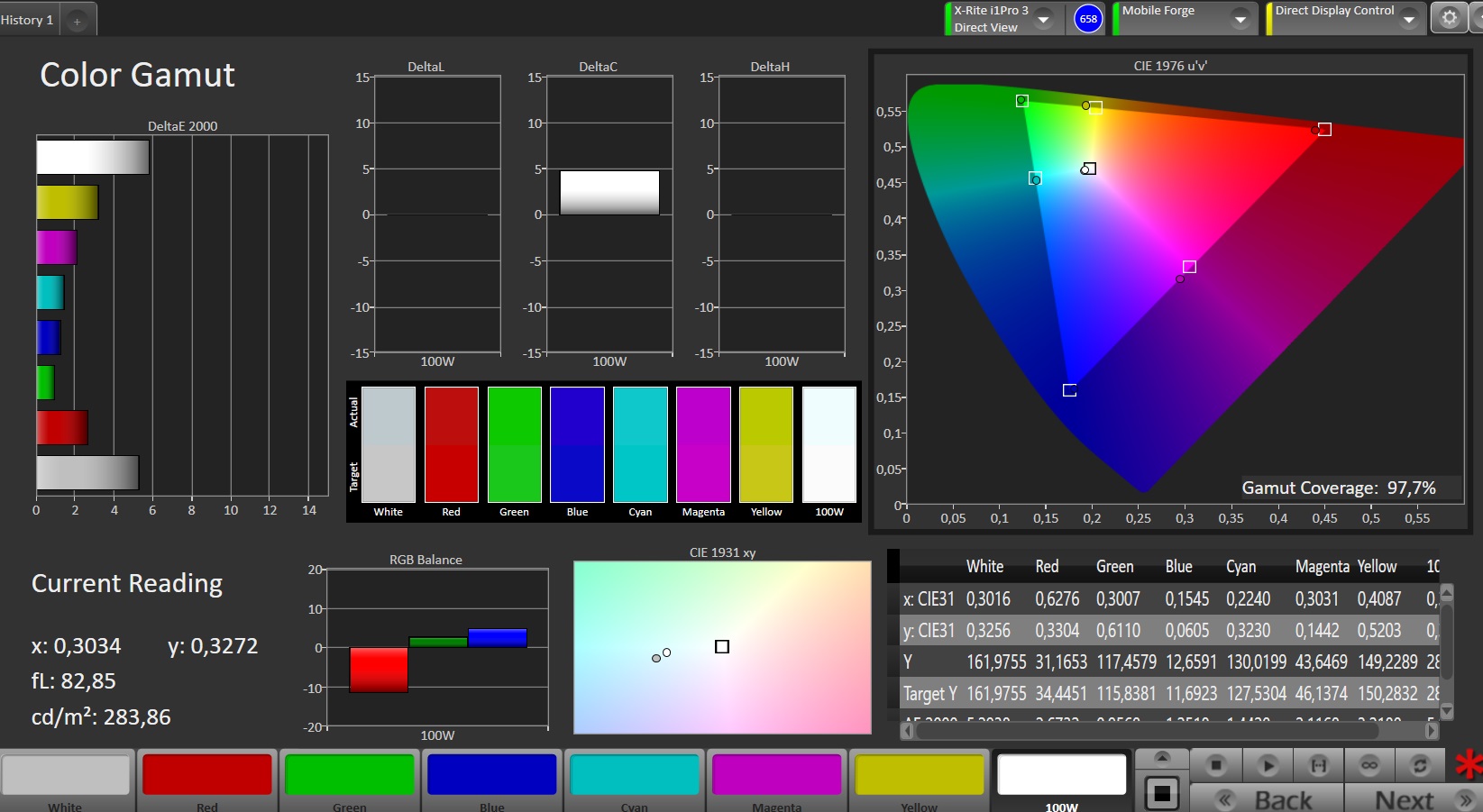| Colorchecker dE 2000 max. * | 5.84 | 7.2 -23% | 11.4 -95% | 8.84 -51% | 15.66 -168% |