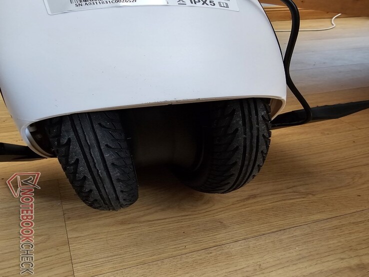 Dürüst olmak gerekirse, çift tekerlekler iç mekan döşemeleri veya beton dışındaki arazilerde araca yardımcı olmuyor gibi görünüyor: 14 inçlik lastiklerin şişirilebilir olması ve bir şeylere takılmaya eğilimli olması nedeniyle çakıl veya çim için tamamen uygun görünmüyor.