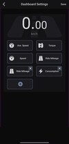 Ana ekran, ilk açılışta sürüş süresi ve maksimum hız gibi faydalı ölçümleri gösteren 4 'performans' kartıyla oldukça iyi ve net bir düzene sahiptir, ancak tork, ortalama hız ve pil tüketimini içeren bir dizi alternatif kartla özelleştirilebilir ve artırılabilir.