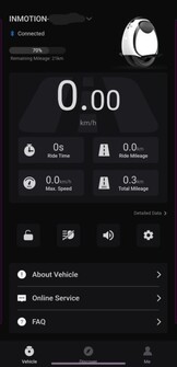 E20'nin düzgün şekilde başlatılması için INMOTION uygulamasına (iOS veya Android için) bağlanması gerekir. Ayrıca kullanıcının kendisini aracın sahibi olarak kaydetmesine, cihaza bağlanmasına ve bazı işlevlerini kontrol etmesine olanak tanır.