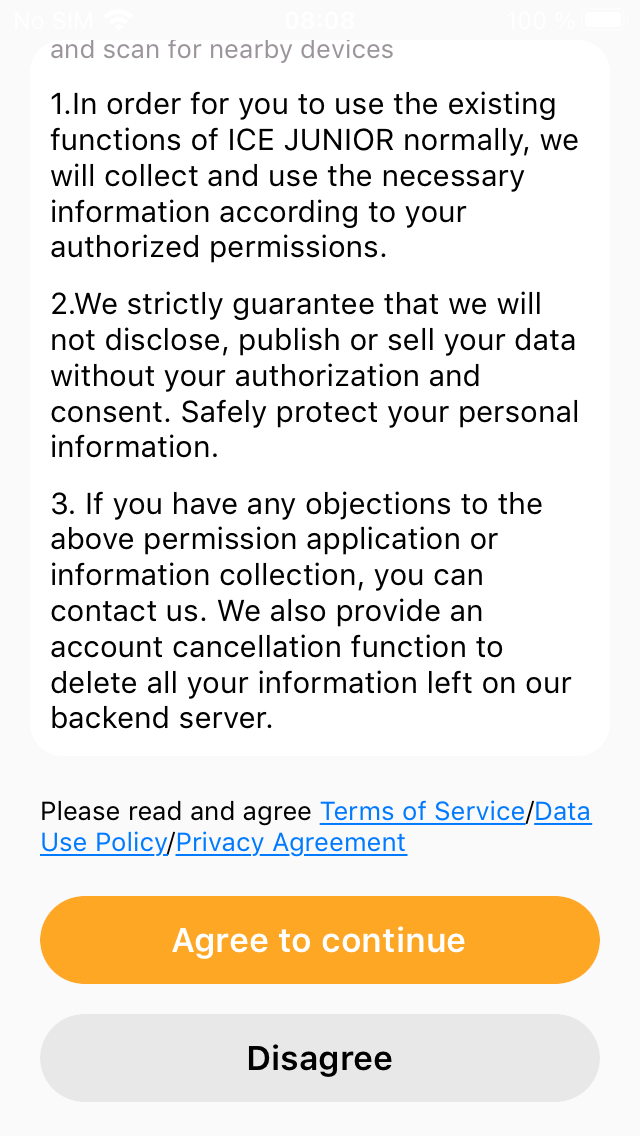 Şarj ederken, "misafir" modunda da kullanılabilen ICE Junior uygulamasını ( Android ve iOS için mevcuttur) indirmek en iyisidir. Bununla birlikte, gizlilik politikasının tamamı okunduğunda, üreticinin makul miktarda veri toplayabileceği, muhtemelen AB dışında depolayabileceği ve üçüncü taraf sağlayıcılarla paylaşabileceği izlenimi veriyor - bir çocuk ürünü için tam olarak ideal değil. Uygulama ile eşleştirme, tüm izinler verildiği sürece basittir.