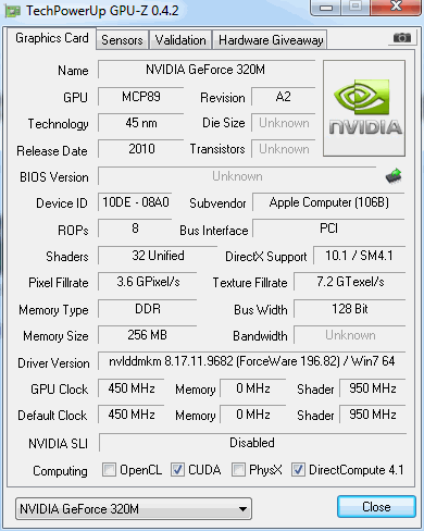 GeForce 320M'nin teorik grafik performansı beyaz MacBook ile aynı seviyede ve sıralamada kendini GDDR3 değil de GDDR2 hafızalı 9600M GT ile aynı seviyede buluyor.