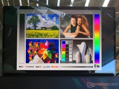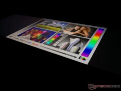 OLED ekranlar genellikle daha açık ve daha derin kontrast oranlarına sahip olduklarından, IPS ekranlardan açık havada görmek daha kolaydır. UX581 için, ana ekran gölgedeyken kullanılabilirken, doğrudan güneş ışığı hala ekrandaki herhangi bir içeriği boğacaktır. Ağır parlamayı en aza indirgemek için her zaman maksimum parlaklık ayarı önerilir. Görülen kontrast geniş açılardan sabit kaldığından izleme açıları mükemmel ve IPS'den daha iyidir. Gökkuşağı rengi bantları, OLED panellerine özgü olan oldukça geniş açılardan meydana gelecektir.