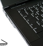 Maksimum profosyenellik ve tasarımın ciddiliğini korumak için cihaz tamamen mat siyaha batırılmış gibi. Sadece klabyenin üzerindeki LED'in mavi ışığı ayrı bir renk tonu katıyor. Mavi - menekşe rengi ile touchpad de klavyenin üzerinde kendini belli ediyor. Bunun yanında klavye tuş karakterlerininde yalnızca beyaz işlendiği gözden kaçmıyor.