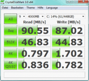 Hızlı 7200 rpm ile dönen sabit disk Seagate (ST9500420AS) markalı ve 500 GB kapasiteli. Sabit disk sıralı okuma testinde 79 MByte/s sonucunu veriyor (HD-Tune).Crystal Disk testi ise başka bir method kullanıyor ve yazma hızında neredeyse 90 MB/s hızına bile ulaştık. PCMark Vantage testinden ise 4169 puan toplanıldı. Genelde 5400 rpm ile dönen sabit diskler 3000 puan civarı bir skor alıyorlar.