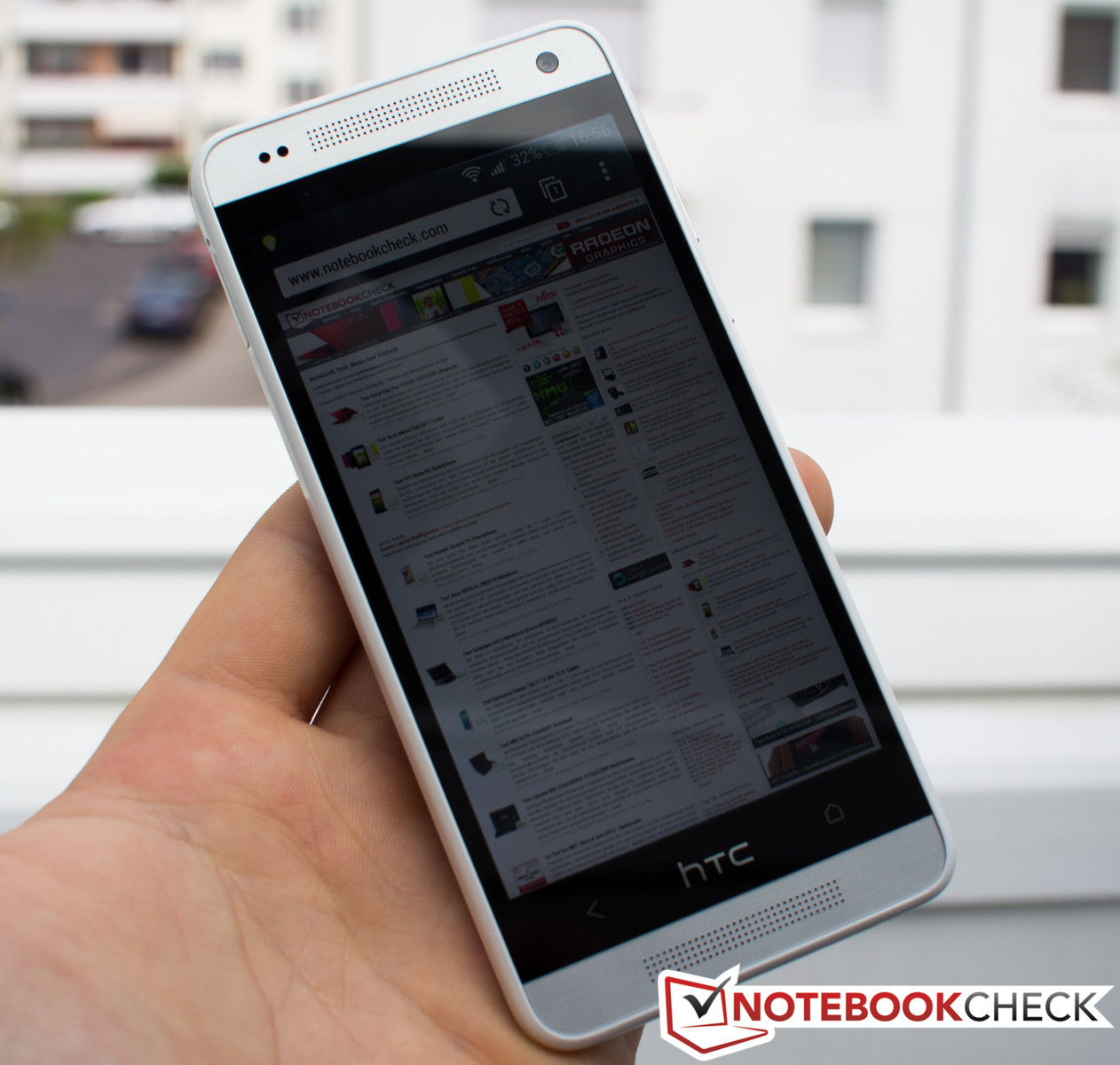 Yüksek kontrast ve parlak ekran kombinasyonu ile cihaz dış mekanlarda da rahat bir şekilde kullanılabilmekte. Dediğimiz gibi büyük kardeş olan HTC One modeline kıyasla kontrastın %50 daha az olmasına karşın performans gayet iyi.