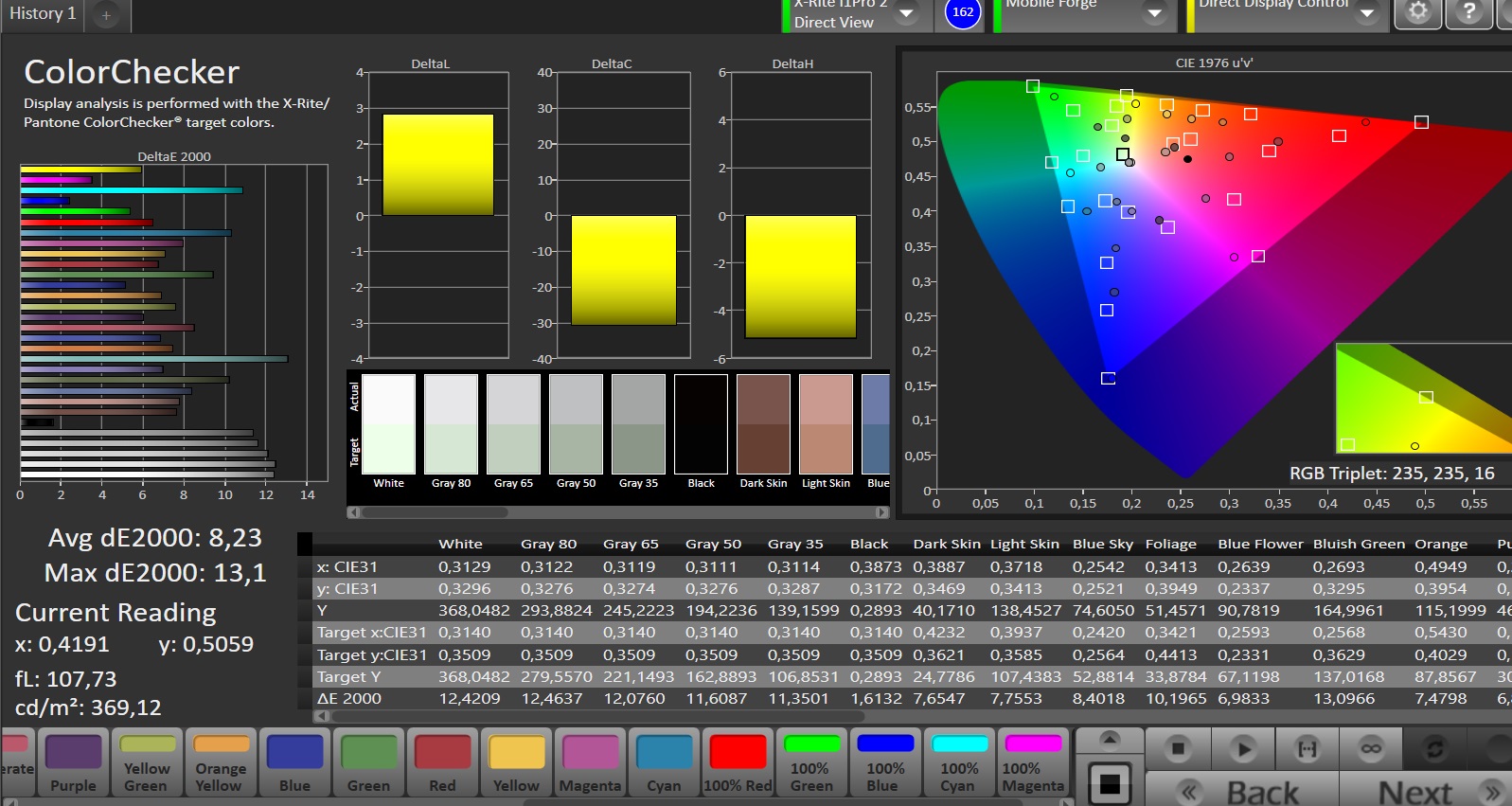 | Colorchecker dE 2000 max. * | 12.5 | 9.2 26% | 9.5 24% | 4.6 63% | 9.6 23% |
