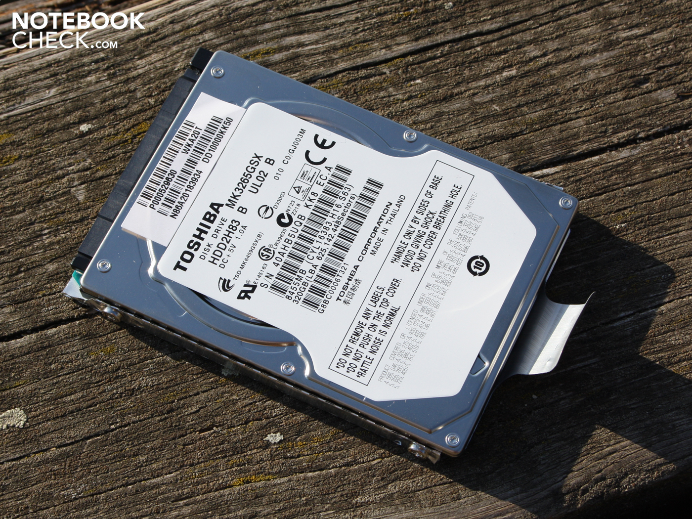 Sabit disk ise 320 GB kapasiteli bir Toshiba (Toshiba MK3265GSX) ve 5400 rpm hızında dönüyor. Hızı iyi sayılır ancak abartılcak bir durum mevcut değil. HDTune testinin sonucu 61.3 MB/S çıktı. En iyi notebook sabit diskleri genelde 70 MB/s üzerinde bir performans sergiliyor.