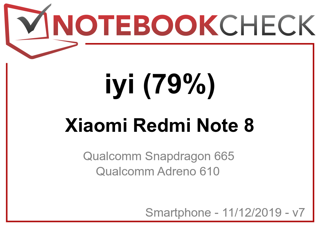 | 79.2 % v7 (old) | 12/2019 | Xiaomi Redmi Note 8 SD 665, Adreno 610 | 190 g | 128 GB eMMC Flash | 6.30" | 2340x1080 | |