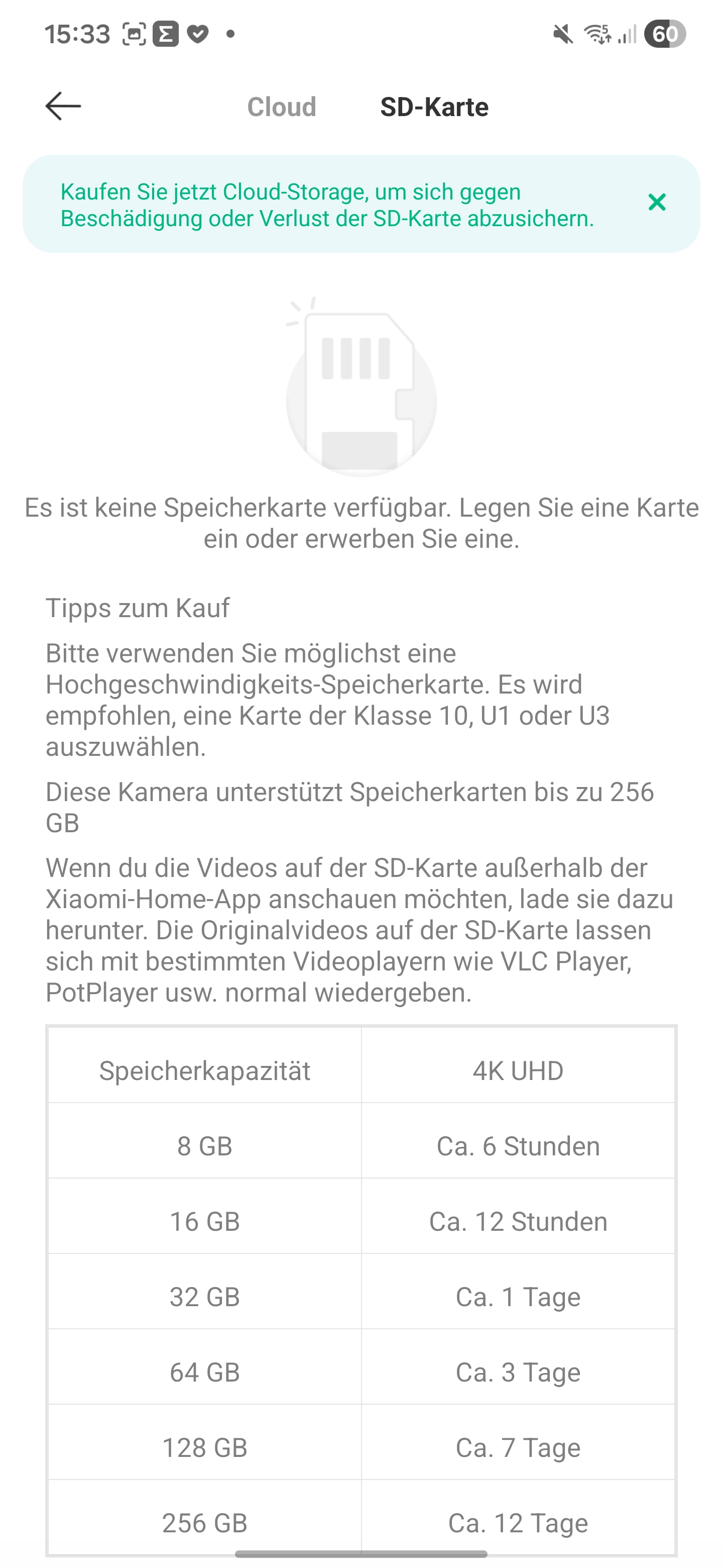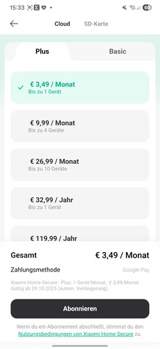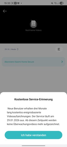 Nesne algılama ve izleme gibi yapay zeka özellikleri için Xiaomi Home Secure aboneliği gereklidir. Satın alma işlemine üç aylık ücretsiz erişim dahildir. Bundan sonra, 30 günlük bulut depolama alanı sağlayan Plus planı aylık 3,50 € veya yıllık 33 € tutarındadır. Dahili bellekte veya microSD kartta yerel depolama ücretsizdir ve eski görüntülerin üzerine otomatik olarak yazılır.