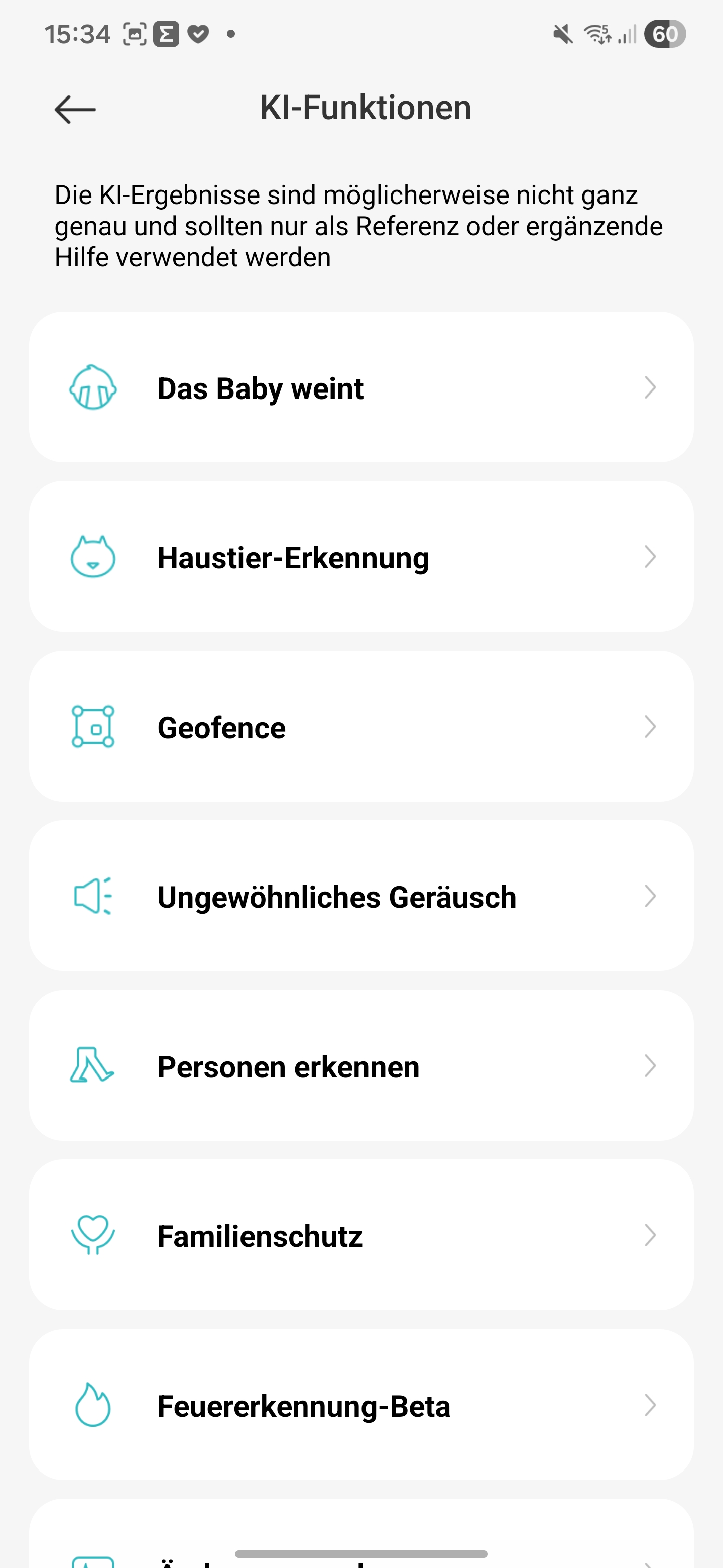 Kamera, insanlar ve evcil hayvanlar arasında otomatik olarak ayrım yapacak şekilde tasarlanmıştır. Yazılım ayrıca bebek ağlamalarını ve olağandışı sesleri de algılayabiliyor. Testimizde, oyun oynayan çocuklar hem bebek ağlaması hem de olağandışı gürültü için uyarıları tetikledi. Ayrıca, yazılımın bazı bölümleri henüz tam olarak tercüme edilmemiştir.